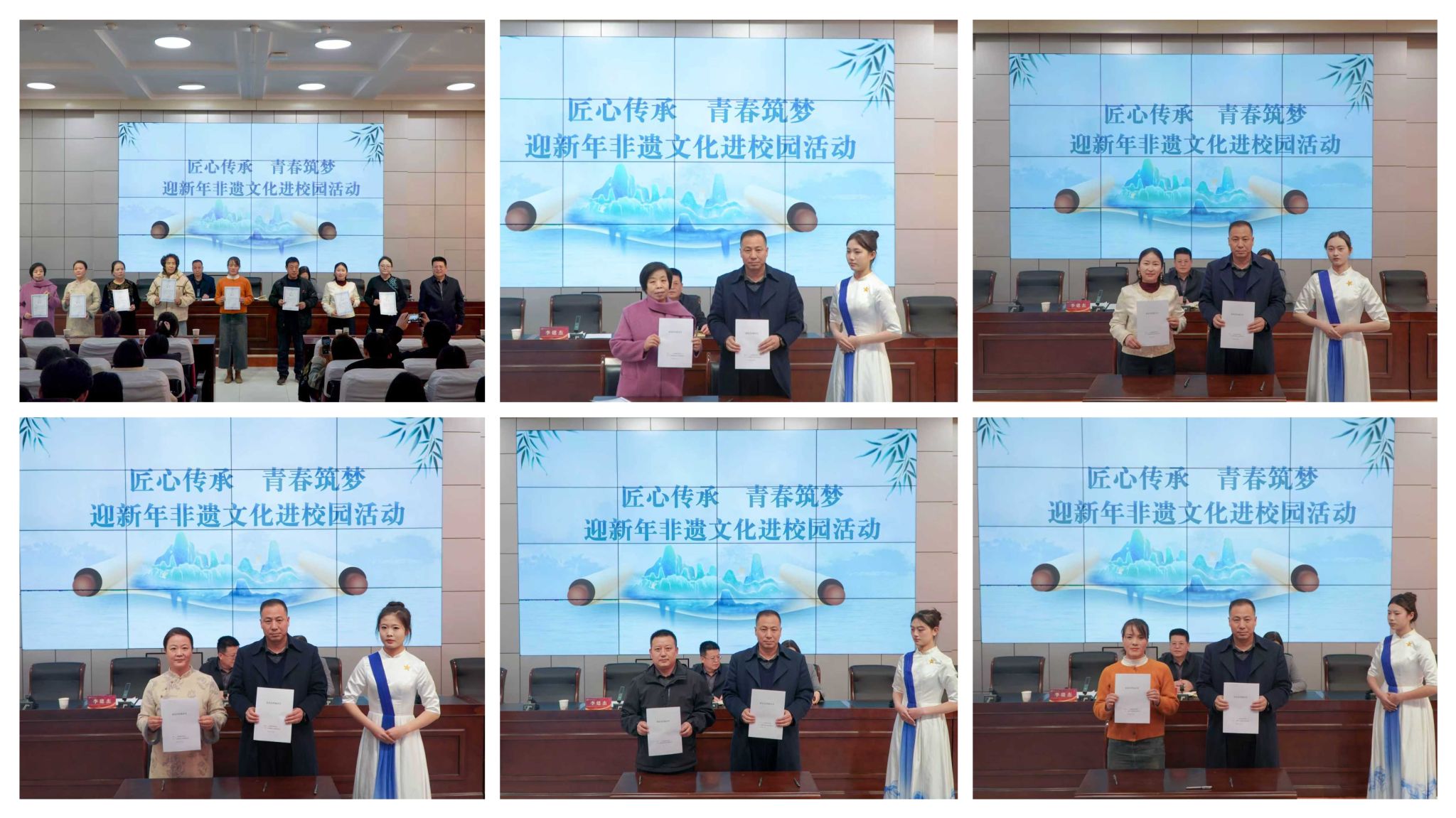 启动仪式上,王婕宣读了《关于聘请非遗传承人担任学院“校园非遗传承导师”的决定》,胡志玉依次为香包传承人张煜瑶、白淑芳,剪纸传承人马路,版画传承人徐弘仓,泥塑传承人赵文、魏一行,刺绣传承人道春霞,茶艺传承人薛文静等八位传承人颁发聘书;李建杰代表学院与五家企业签署非遗文创产品开发合作协议,共同推进非遗技艺的传承创新与市场转化。