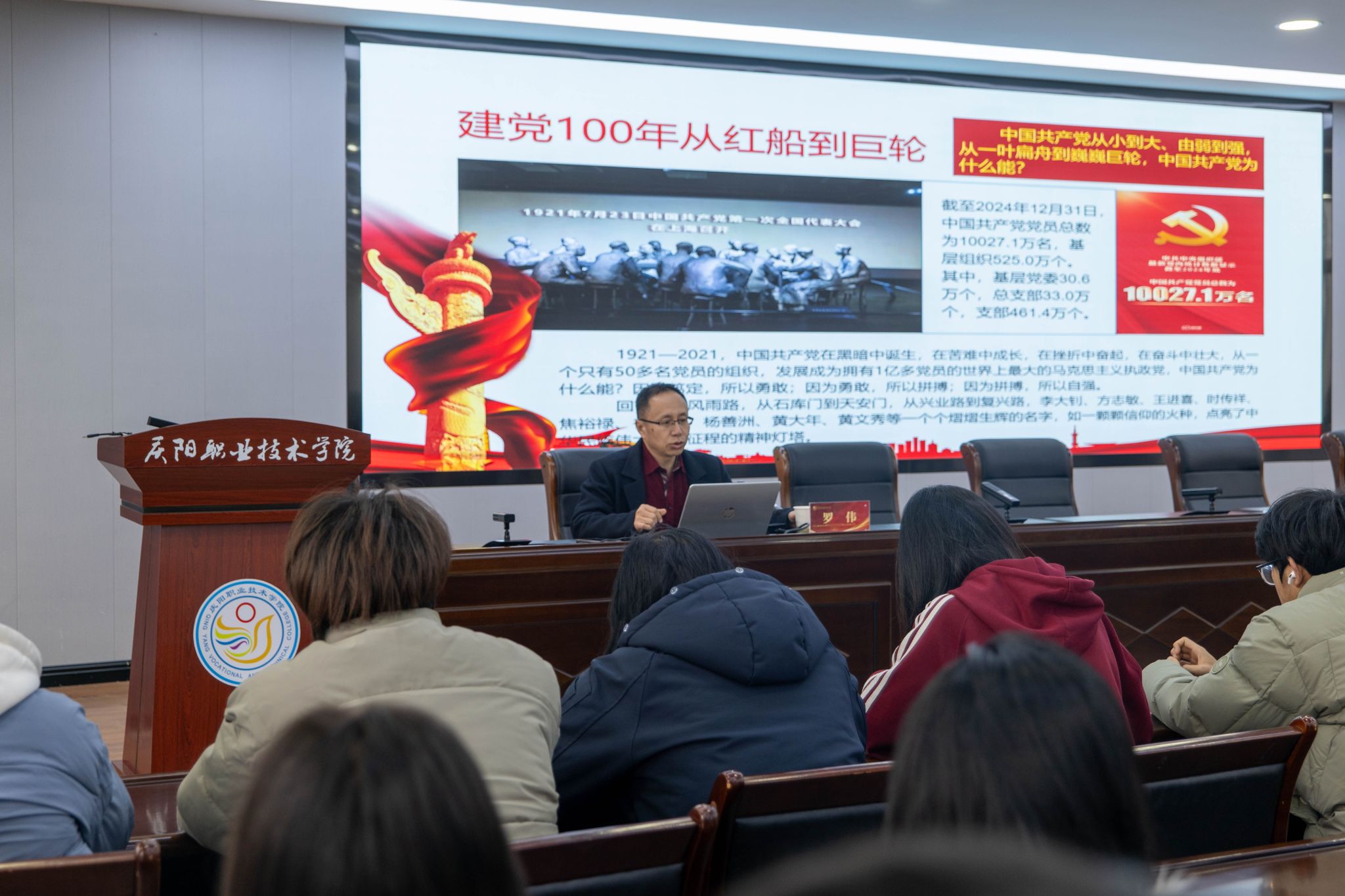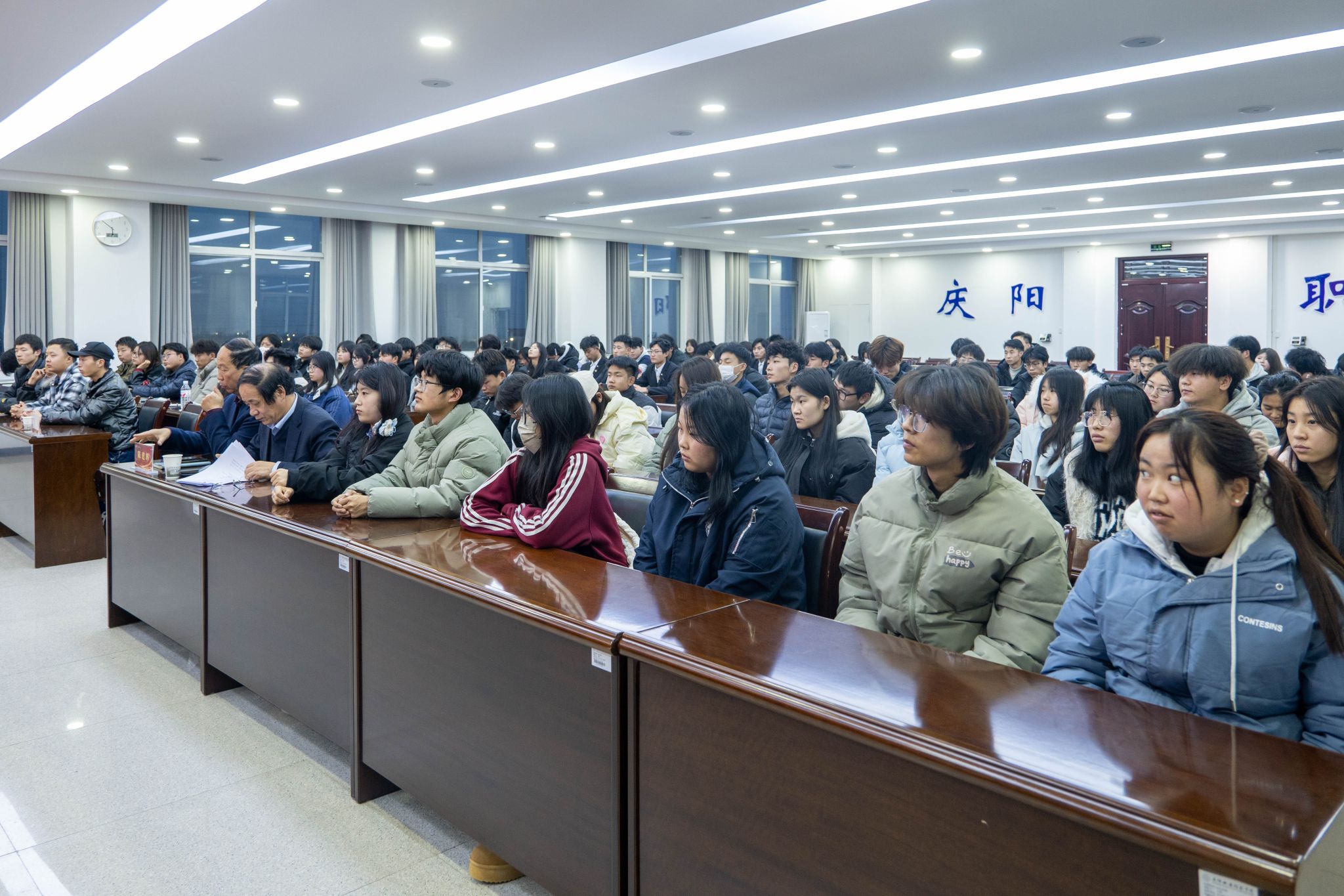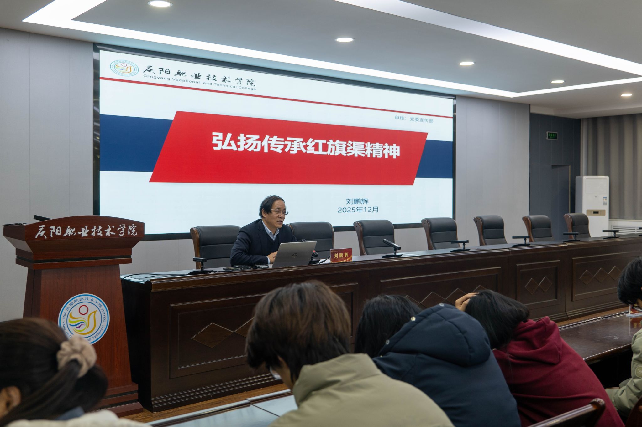 为深入学习贯彻党的二十届四中全会精神,落实立德树人根本任务,引导学生坚定理想信念、强化使命担当,12月15日,庆阳职业技术学院举办“中国共产党人精神谱系”宣讲报告会。活动邀请市委宣讲团成员、马克思主义学院党支部书记罗伟,市委宣讲团成员、马克思主义学院院长刘鹏辉,市委宣讲团成员、学院安全管理处处长陈建辉作专题宣讲报告。“青马工程”学员及学生干部200余人参加。