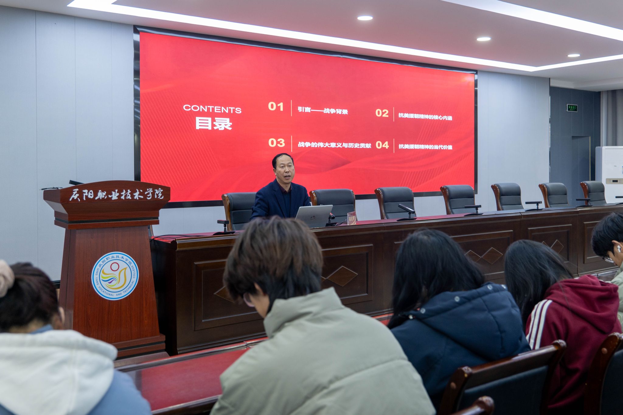 陈建辉聚焦“铭记伟大胜利,弘扬抗美援朝精神”,从战争背景切入,解读了爱国主义、革命英雄主义、革命乐观主义、革命忠诚和国际主义精神的核心内涵,通过黄继光、邱少云等英雄事迹及关键战役,引导学生铭记历史、勇担时代责任。