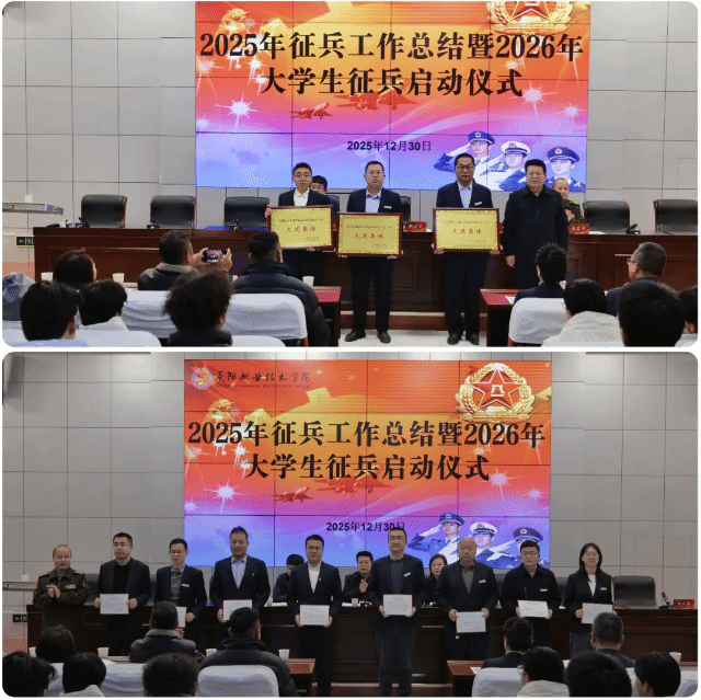 会上,学生工作处(征兵工作站)对学院2025年征兵工作进行了全面总结,并对2026年征兵任务作了安排部署。宣读了学院关于表彰2025年度征兵工作先进集体和个人的决定。退役士兵代表结合自身经历分享了军营生活的收获与感悟,并对征兵政策进行了解读。