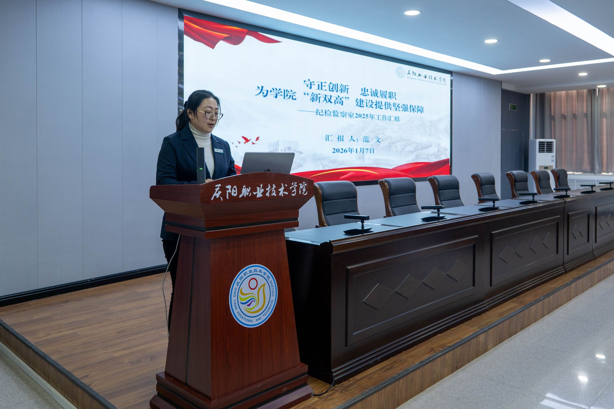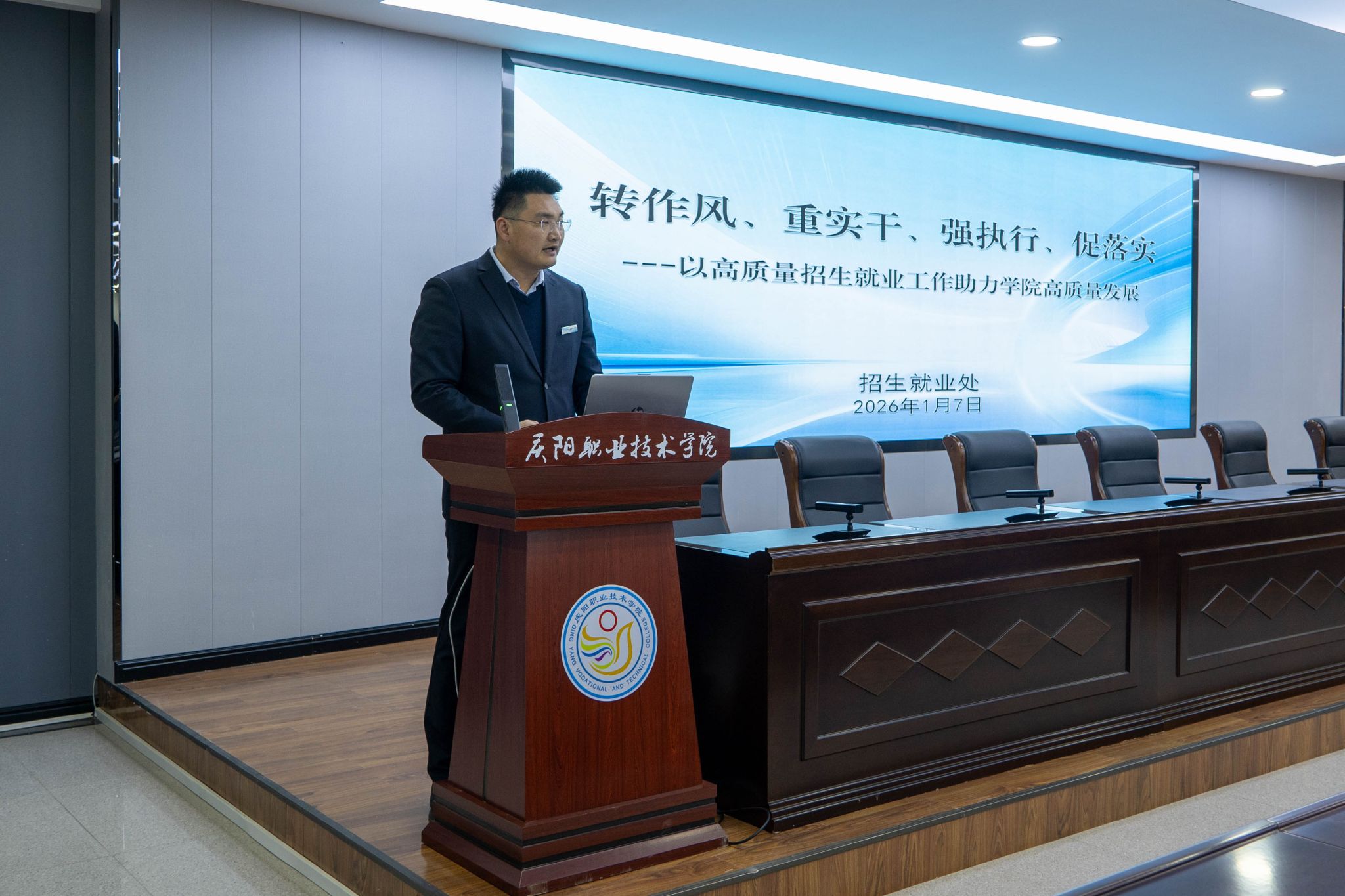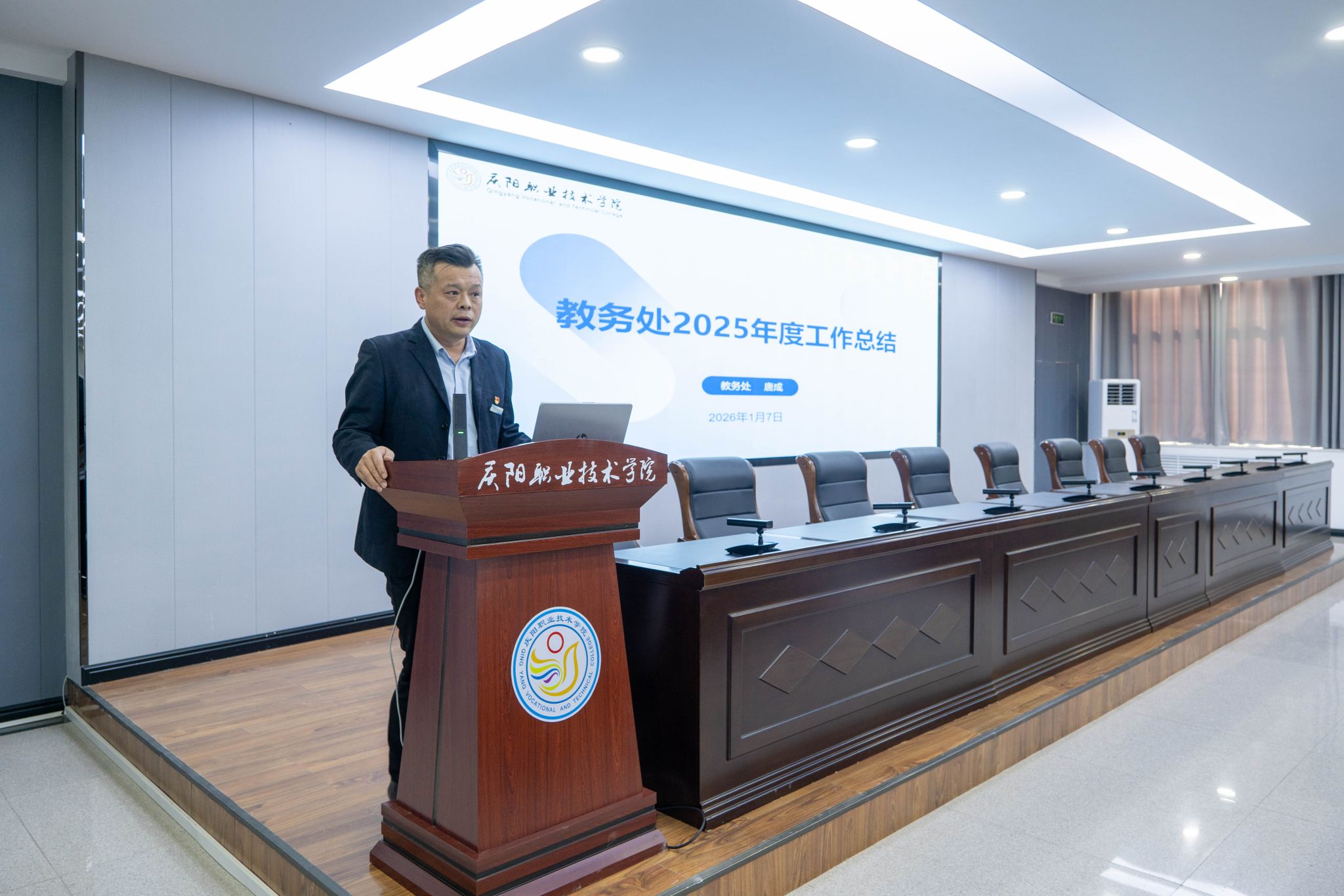 会议充分肯定了各部门在2025年度所取得的工作成绩。会议指出,2025年各部门聚焦主责主业,在服务发展大局、提升工作质效、强化内部管理等方面持续发力,推动各项任务落地见效,展现了良好的精神风貌和责任担当,为学院高质量发展奠定了坚实基础。一是党建引领持续加力,创建“匠心育才 技能报国”党建品牌,培育“数聚匠心”“文旅红心”等8个支部品牌,胜利召开第三次党员大会,选举产生新一届党委委员,办学方向更加端正,立德树人落地有声。二是思想观念持续新进,聚焦“匠心育才”初心使命、“东数西算”国家战略、“低空经济”新兴领域、“能化新都”基地定位、“农文旅融合”特色产业,推动专业设置与产业需求精准对接,大数据技术专业跻身省级高水平专业群建设计划,发展特色愈发鲜明。三是管理机制持续增效,二级院系平稳运行,职能部门与系(院)协同发力,管理效能稳步提升,协同联动更加高效,执行力和落实力显著增强。四是师生素养持续攀升,教学中心地位凸显,教师培训扎实推进,师资结构不断优化,学生精神面貌焕然一新。五是产教融合持续深化,发起成立全国数字信息安全产教融合共同体、陇东低空经济市域产教联合体,服务能力稳步增强,在乡村振兴等领域实践走在前列,政校企合作迈入新阶段。六是纪律作风持续转变,全体教职工识大体顾大局,主动担当作为,干事创业氛围日益浓厚,校园清风正气充盈,为学院发展营造了良好环境。