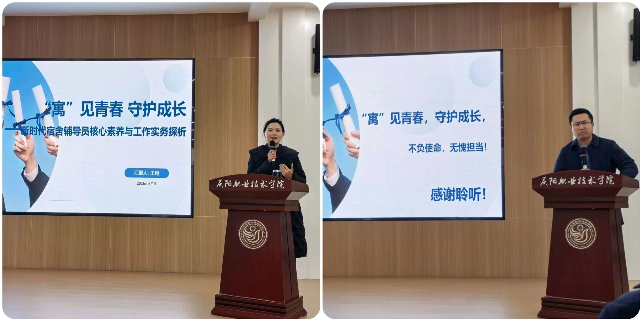为进一步加强辅导员队伍建设,提升育人实效,近日,庆阳职业技术学院举办辅导员素养提升专题讲座。党委书记张建军出席活动,并就辅导员队伍建设与使命担当作出指导、提出期望。