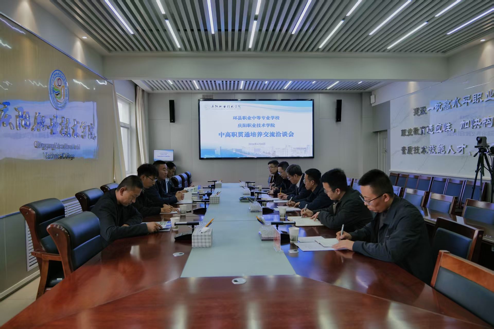 为进一步深化中高职贯通培养合作,搭建校际交流桥梁,推动职业教育高质量协同发展,4月8日,环县职业中等专业学校校长张汉伟一行3人莅临庆阳职业技术学院考察交流。党委委员、副院长王志强,教务处、招生就业处、智能工程系相关负责人陪同考察并座谈。