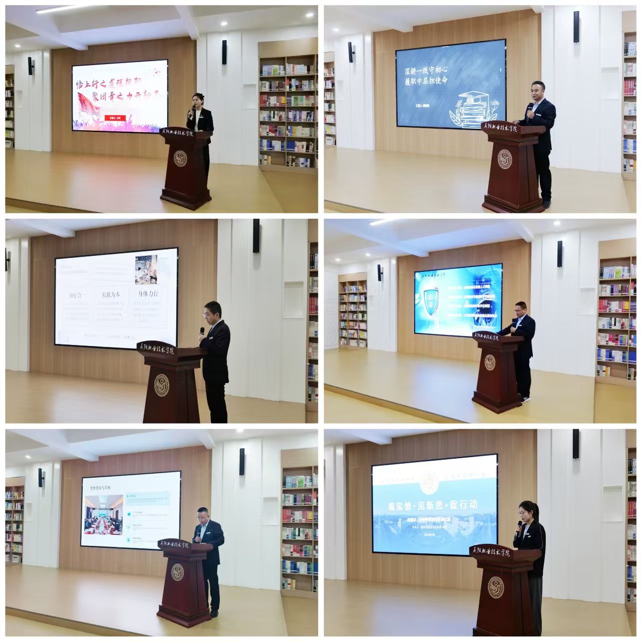 会上,王珂等4名中层干部围绕团学工作、信息化建设、学生管理、教育教学等方面作了交流汇报。青年教师黄博、李睿结合赴重庆、贵州访企拓岗与院校考察经历,分享了产教融合、实训基地建设、专业对接产业、课程贴岗教学等先进经验。分享交流既有政策学习的深度思考,也有观摩考察的直观体悟,更有立足岗位的实践探索,充分展现了干部教师对岗位职责的深刻理解与主动担当,为学院高质量发展提供了可借鉴、可学习的经验思路。
