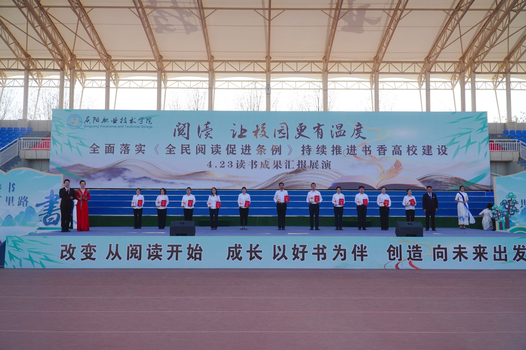 为全面落实《全民阅读促进条例》,持续推进书香高校建设提质增效,4月23日,庆阳职业技术学院在体育场举行2026年“阅读,让校园更有温度”世界读书日主题活动。中国作家协会会员杨永康,庆阳市朗诵协会主席强歌,陕西省、甘肃省朗诵协会会员宋振梅,全国“中华经典诵读”大赛一等奖获得者孙亚宁等专家学者应邀出席,学院领导、全体师生共同参与本次活动。