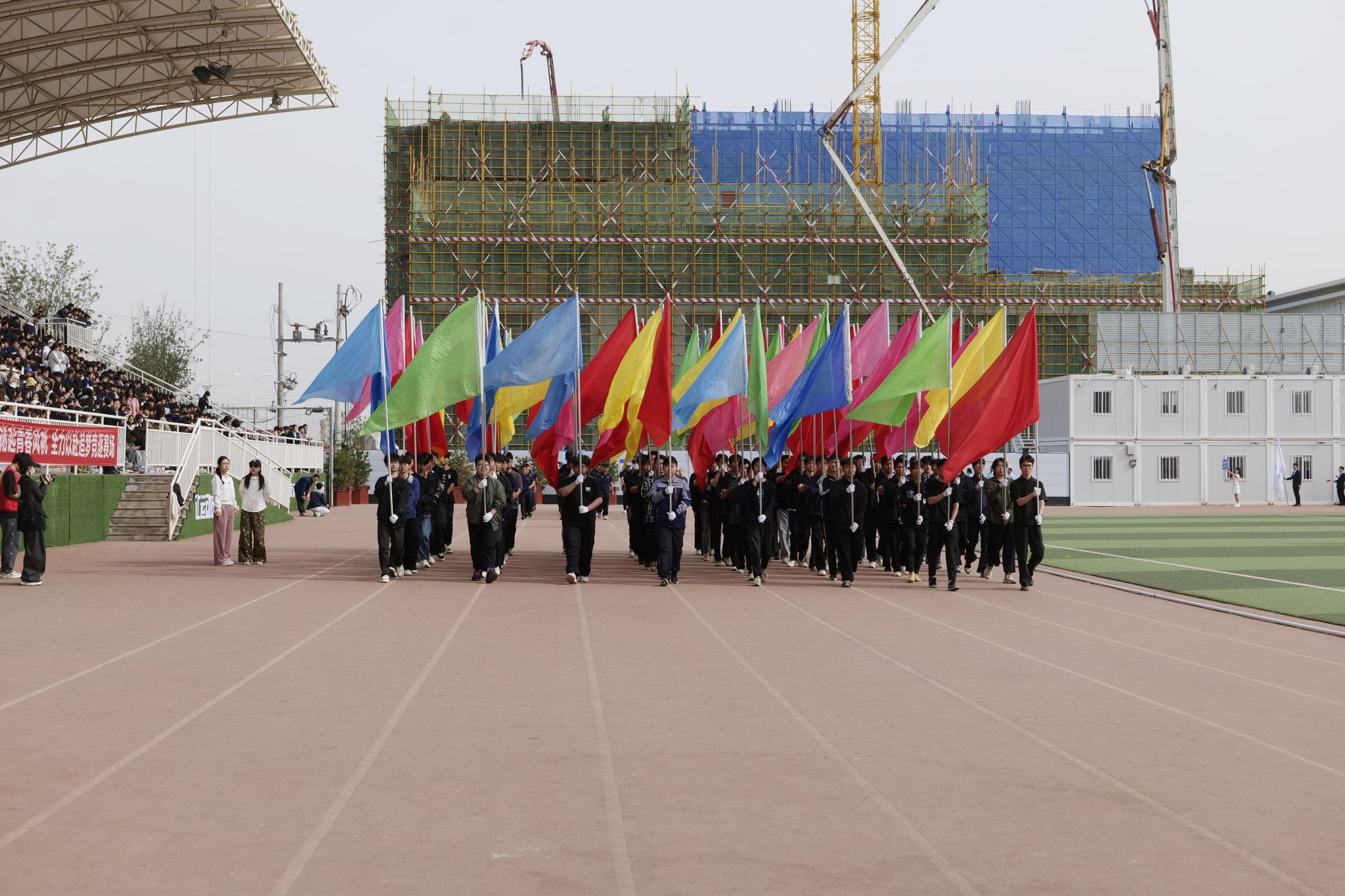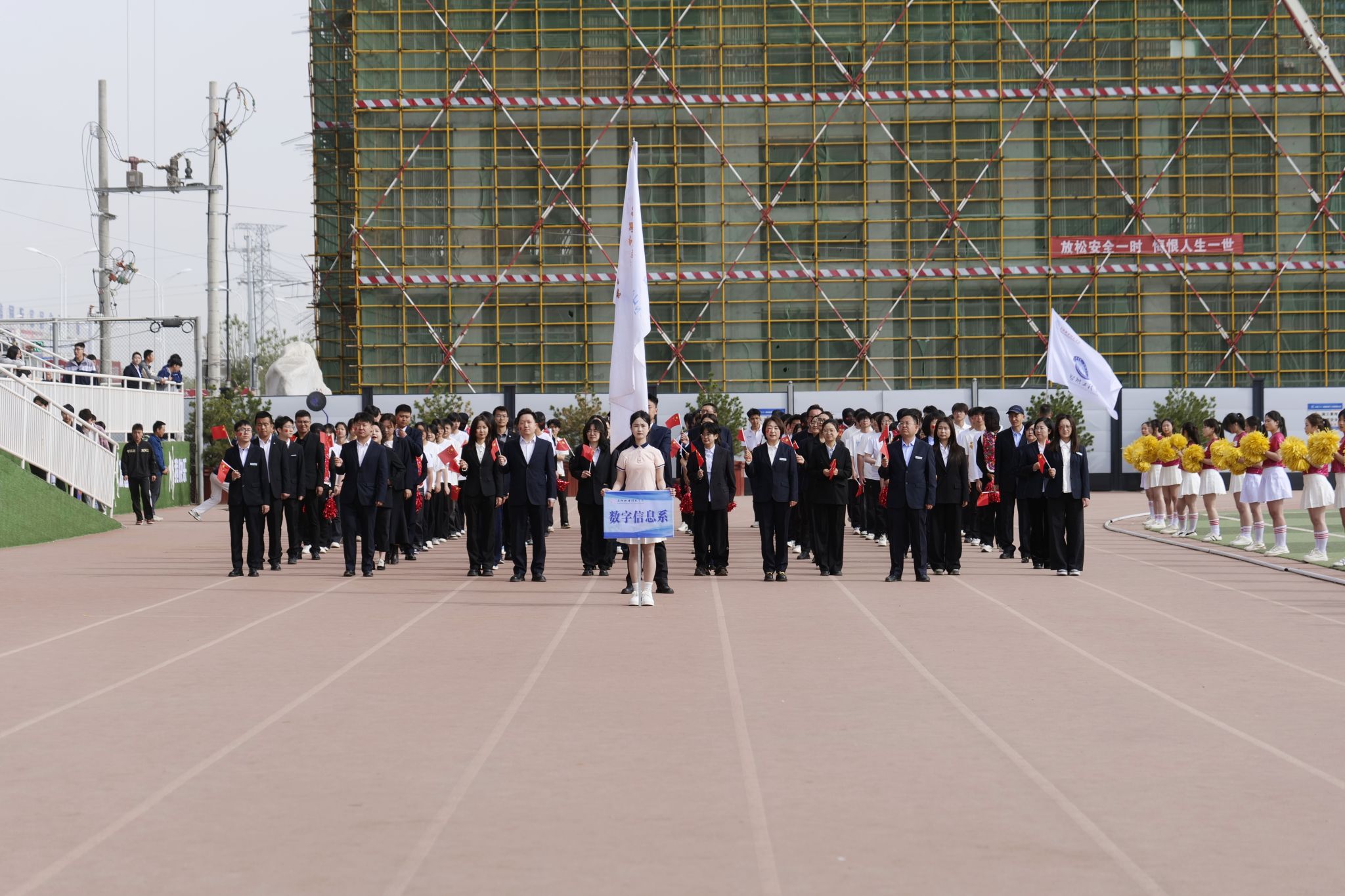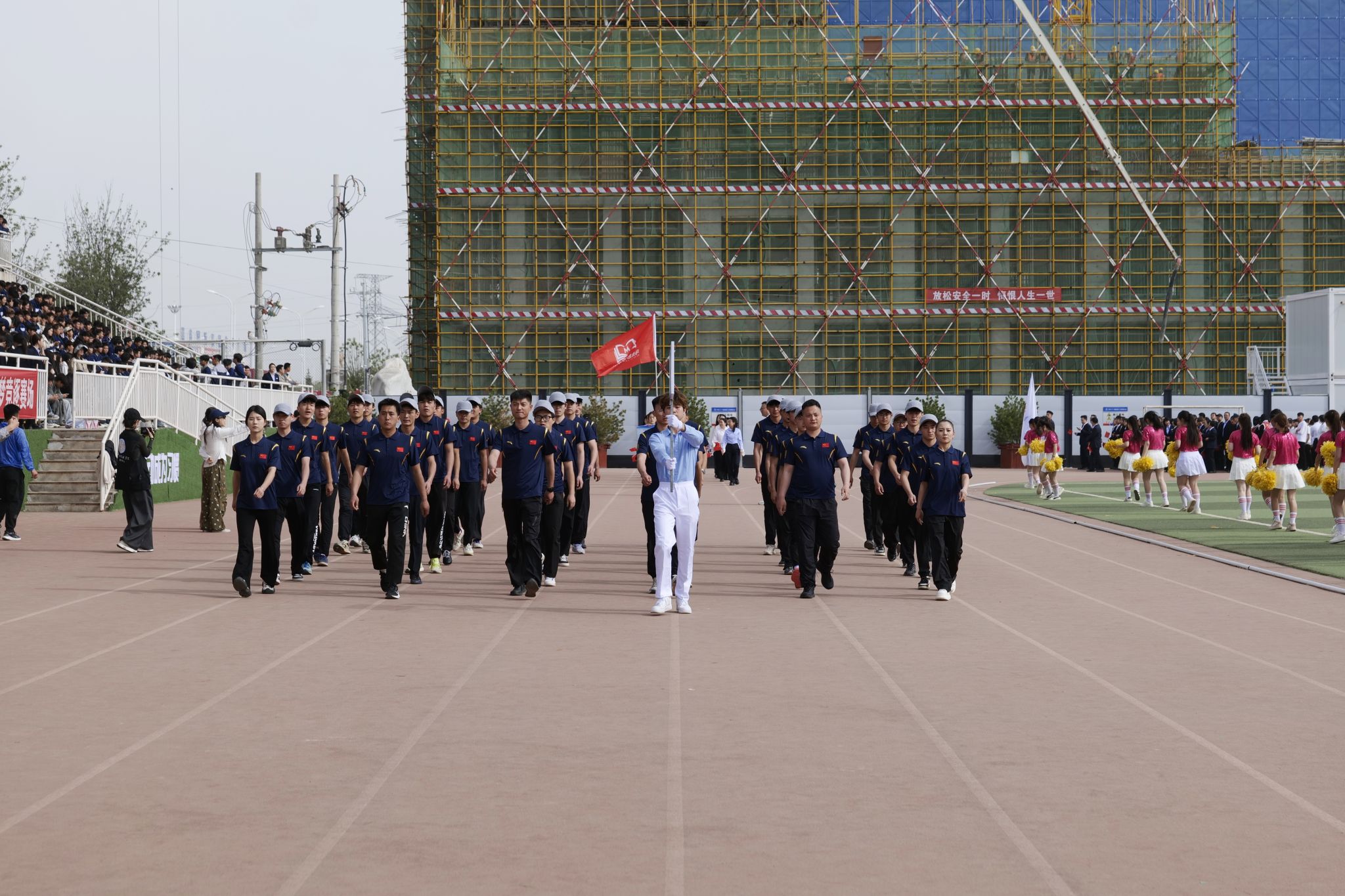 春风送暖,活力飞扬。上午九时许,伴随着激昂嘹亮的《运动员进行曲》,国旗护卫队迈着铿锵的步伐,护卫着鲜艳的五星红旗率先入场。紧随其后的是会旗彩旗方队、各院系方队以及裁判员方队。各代表队精神抖擞、意气风发,生动展现了新时代青年学子朝气蓬勃、奋发向上的精神风貌。