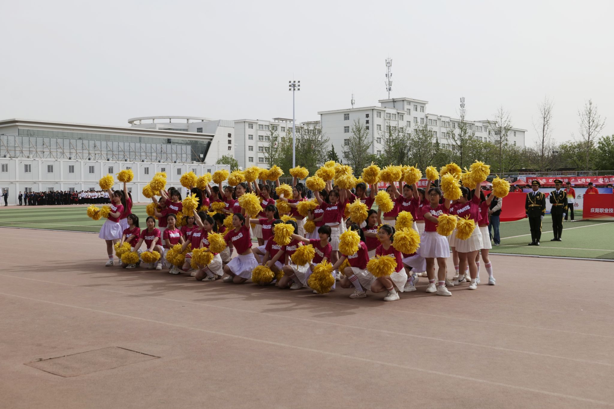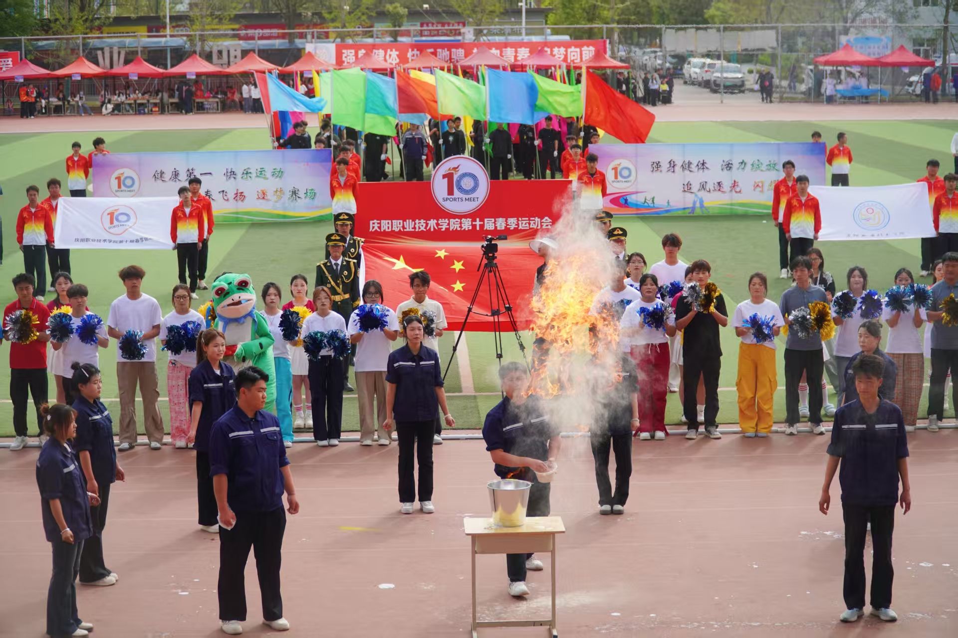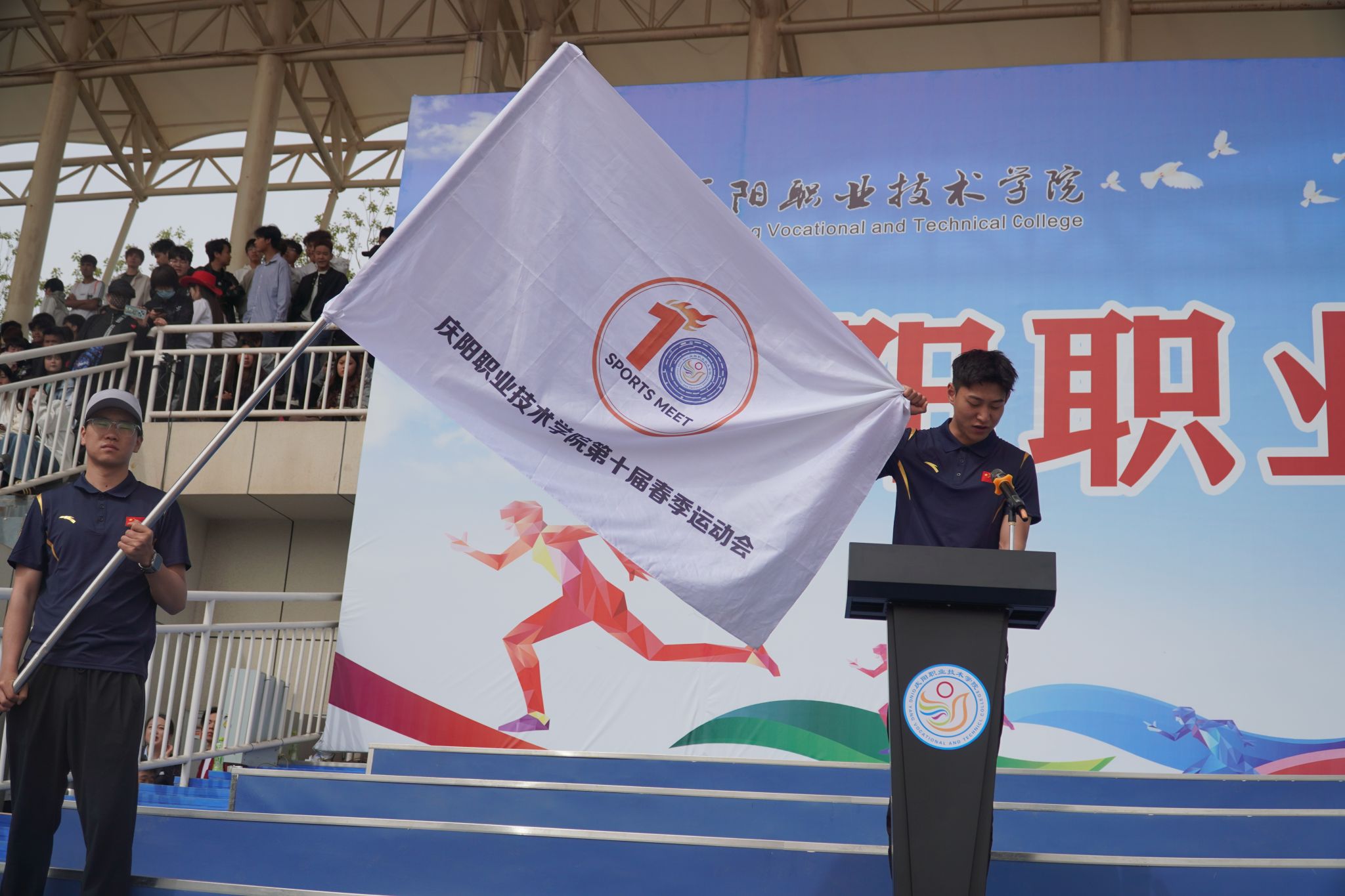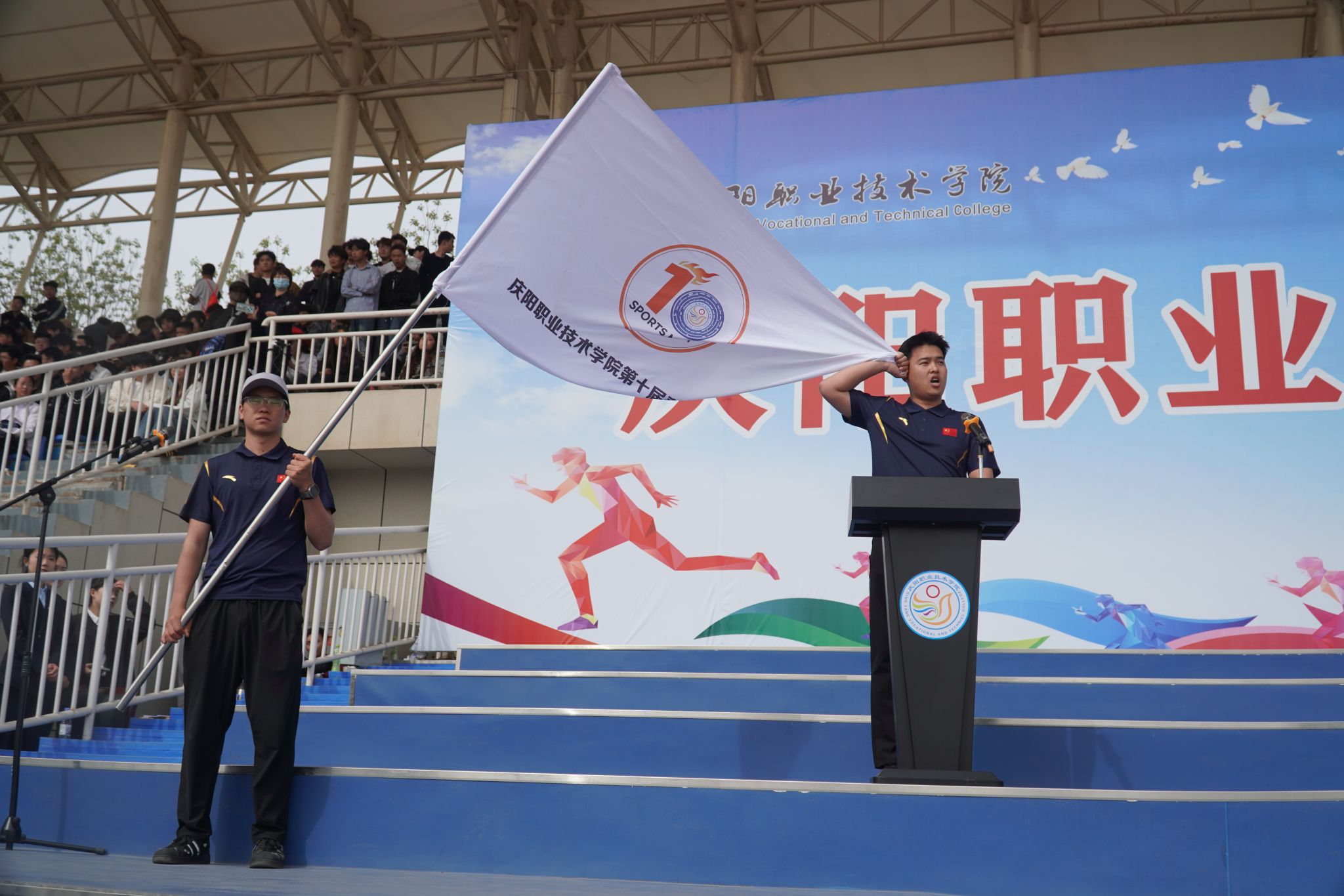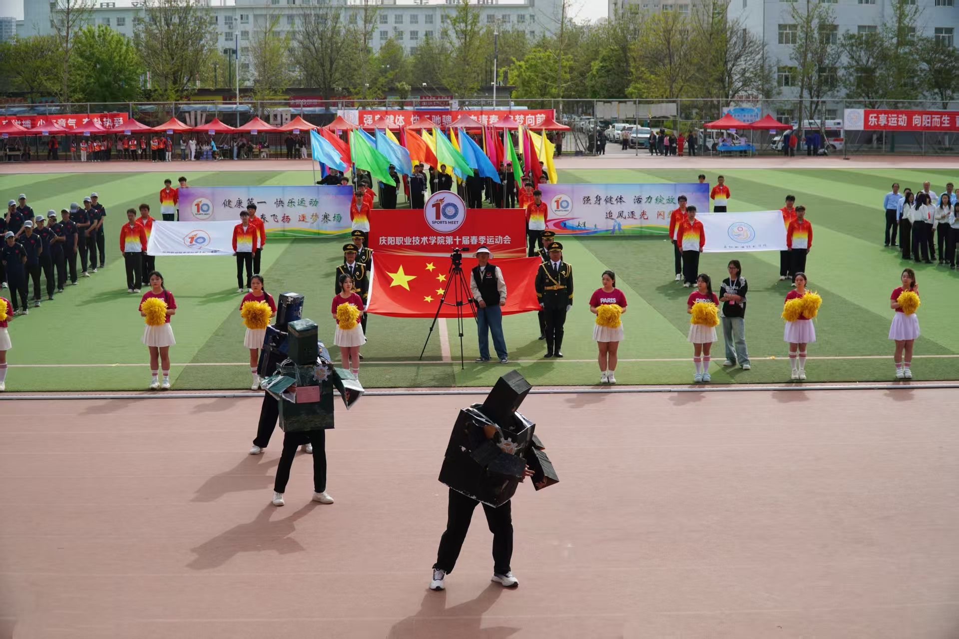 4月28日,庆阳职业技术学院第十届春季田径运动会开幕。党委书记张建军宣布运动会开幕,党委副书记王婕致词,党委委员、副院长李建杰主持。在家班子成员,各部门负责人,全体在校师生共计7000余人参加开幕式。