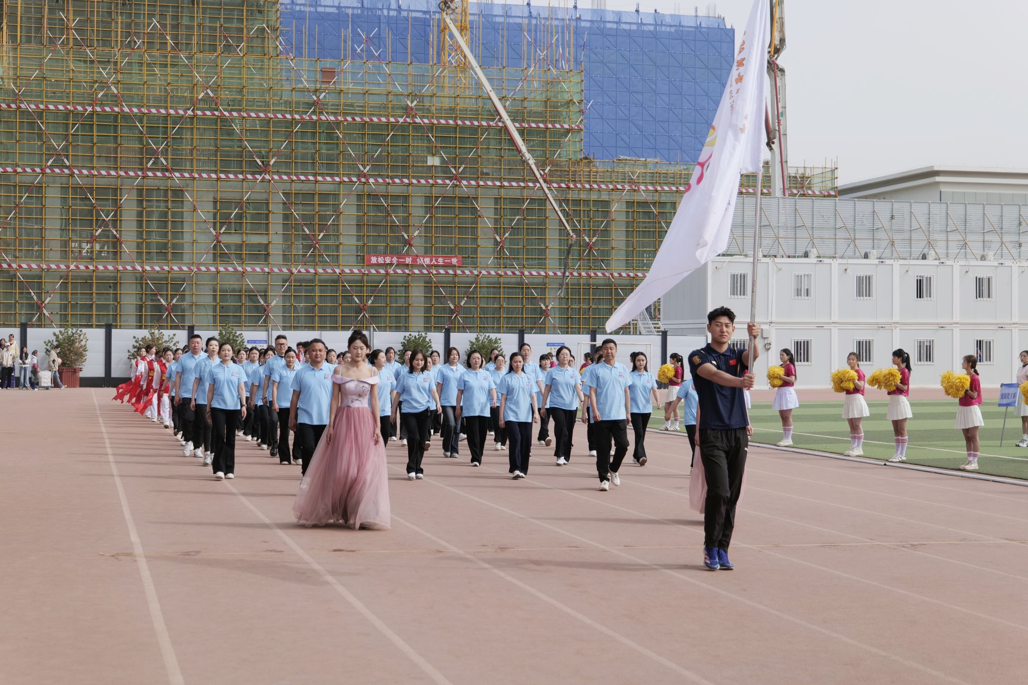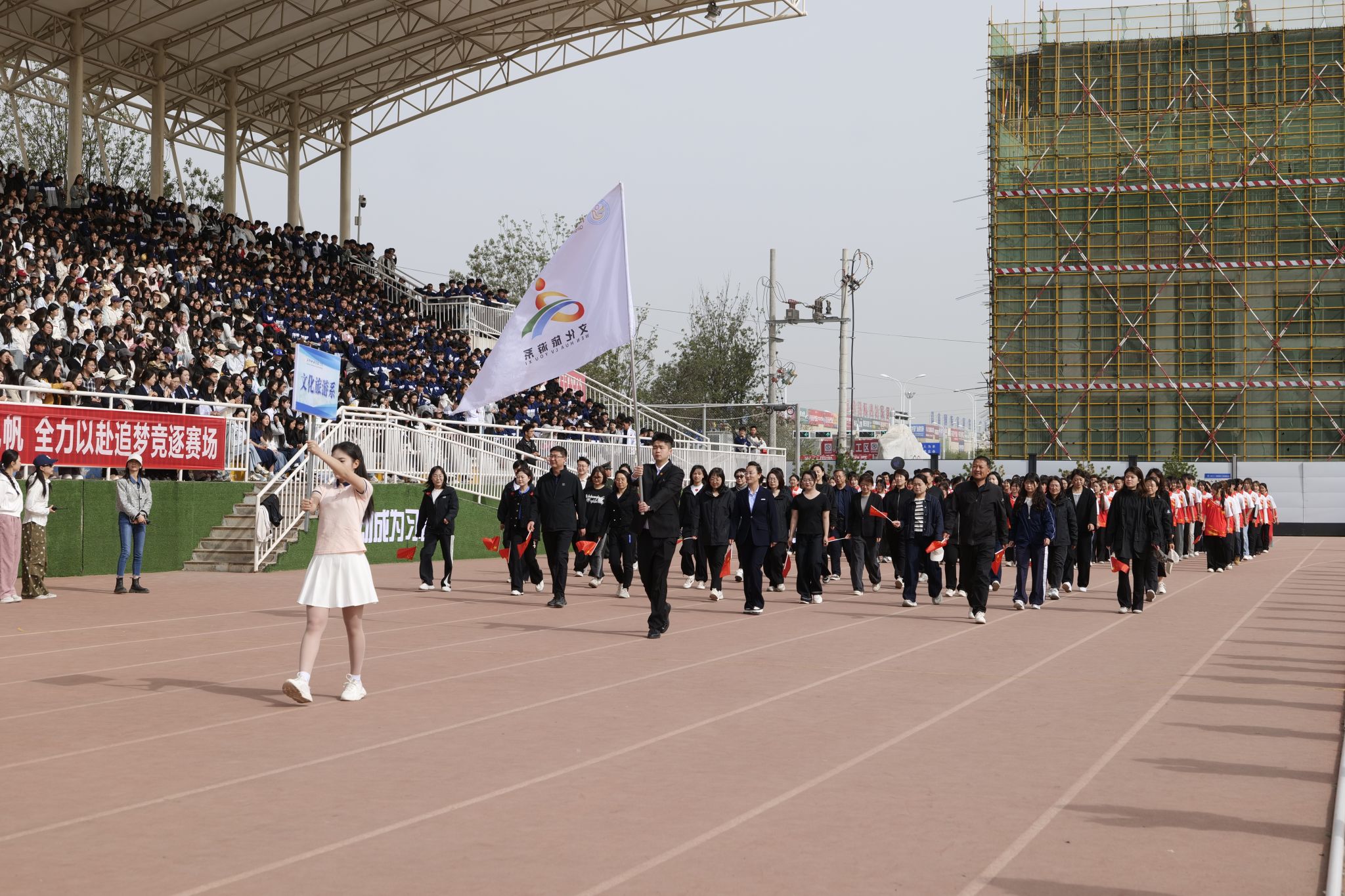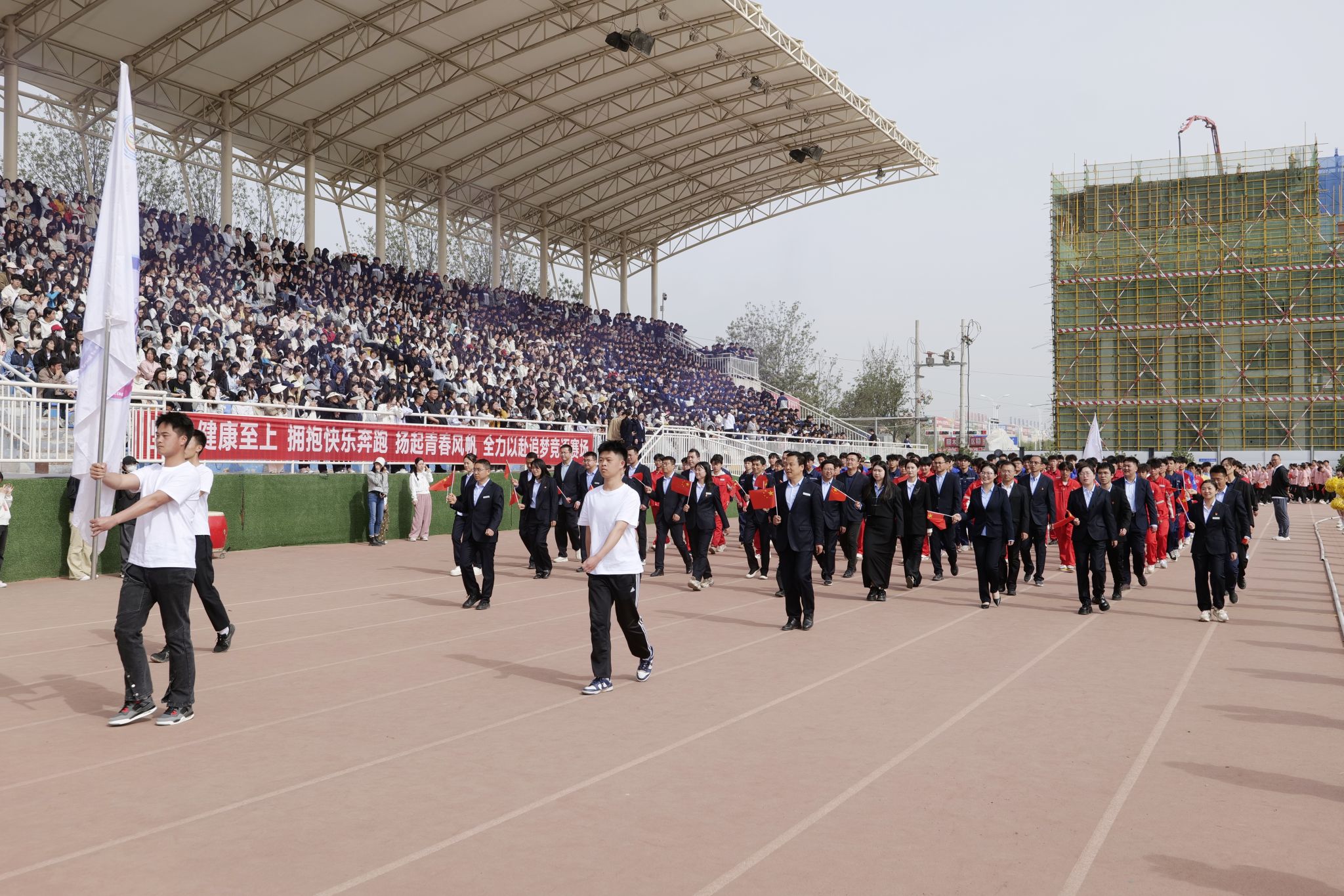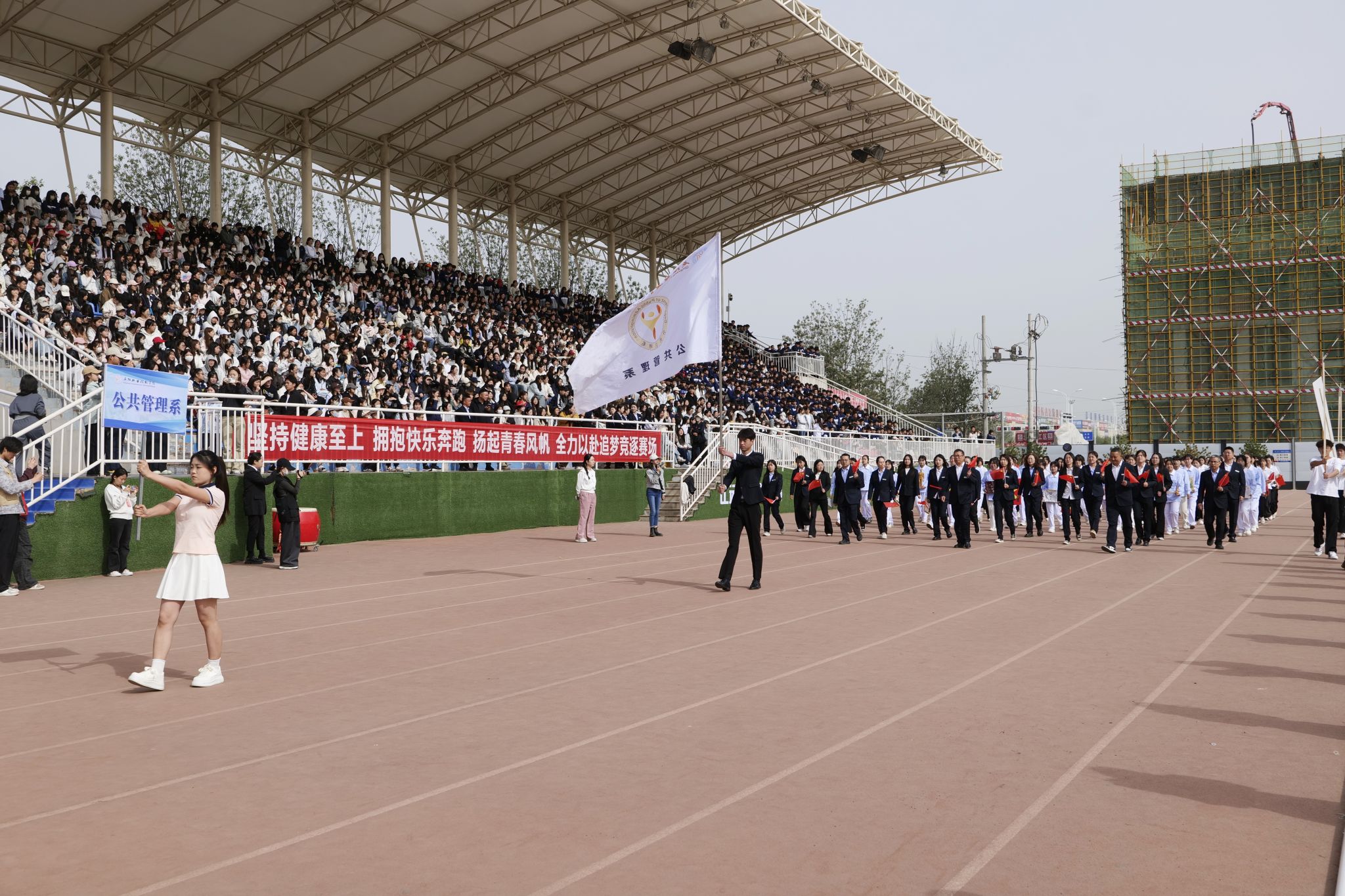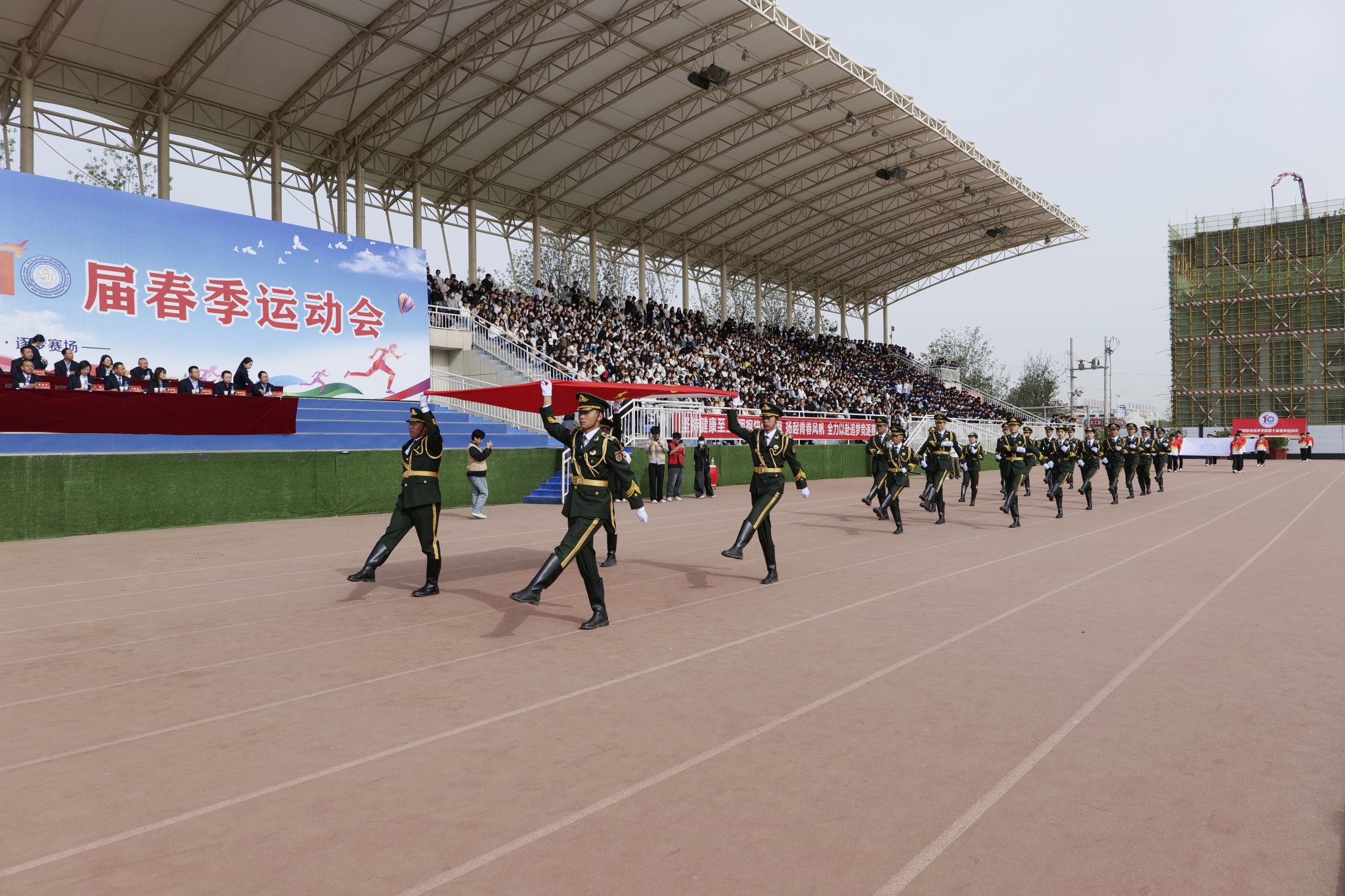4月28日,庆阳职业技术学院第十届春季田径运动会开幕。党委书记张建军宣布运动会开幕,党委副书记王婕致词,党委委员、副院长李建杰主持。在家班子成员,各部门负责人,全体在校师生共计7000余人参加开幕式。