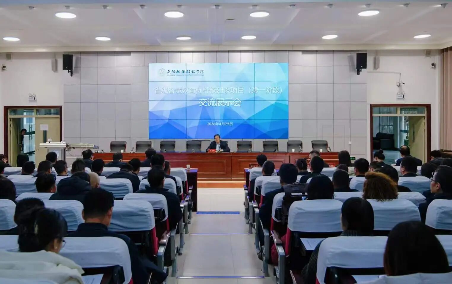 为全面推进省级智慧教育标杆校建设,展示项目阶段性成果,部署下一阶段系统上线运行工作,4月29日下午,学院在多媒体报告厅组织召开省级智慧教育标杆校建设项目(第一阶段)交流展示会。党委委员、副院长王志强主持会议,全体中层干部、各教学单位分管教务及学工干事参加会议,项目承建单位代表应邀参会。