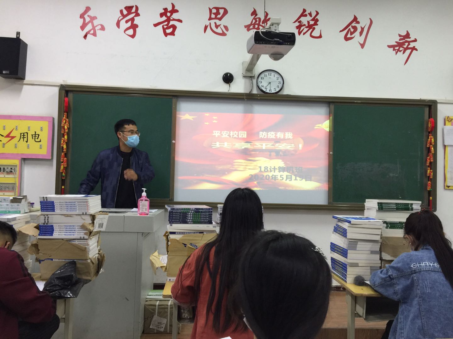 为确保电子信息工程系2019、2018级学生安全、有序地开展复学后的学习生活,5月19日晚自习,系上各班级召开以“平安校园 防疫有我”为主题的班会,会议由各班主任主持。这既是一堂特殊的开学第一课,也是一堂防疫再动员课,还是一堂防疫科普课,更是一堂安全教育课。