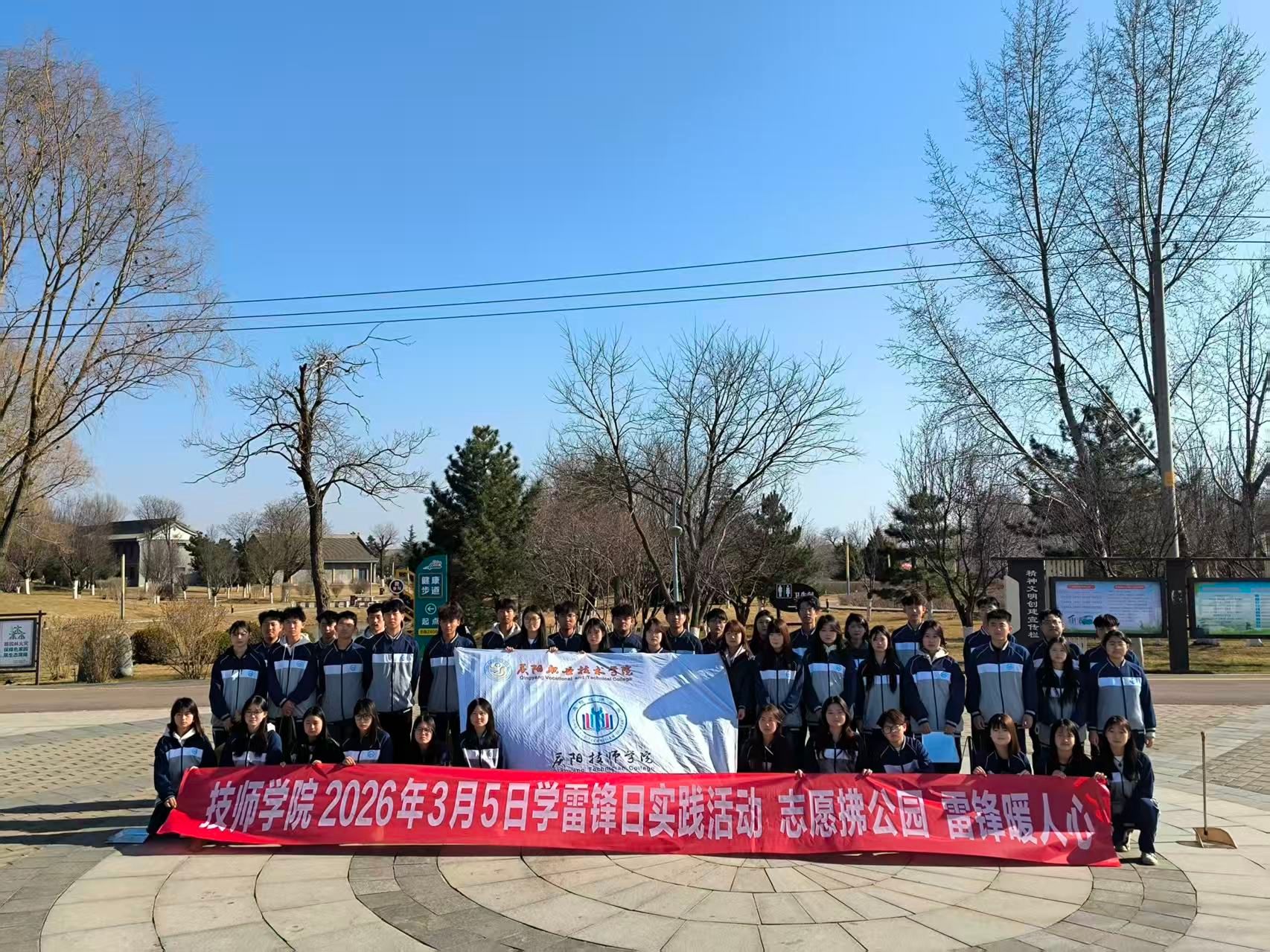 三月春风拂面,雷锋精神薪火相传。为深入贯彻落实关于学雷锋活动的重要指示精神,大力弘扬“奉献、友爱、互助、进步”的志愿精神,引导广大师生以实际行动践行雷锋精神,2026年3月5日下午,技师学院组织师生志愿者前往海绵绿地公园,开展“学雷锋·净公园”义务清扫志愿服务活动。志愿者们用汗水擦亮城市名片,用行动诠释新时代的雷锋精神。