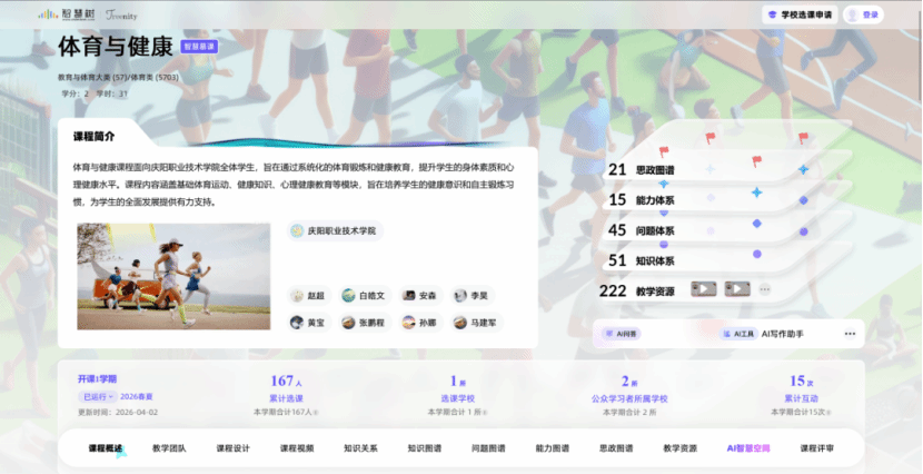 学院立足区域产业发展与职业教育类型特征,以专业核心课与公共基础课为基底,打造覆盖化工、护理、电子电工、体育、美育、思政等多个领域的智慧慕课矩阵。6门课程均由资深教学团队联合行业专家精心打造,凝聚多年教学经验与岗位实践,形成“精品课程→智慧升级→全国共享”的优质资源转化路径,确保课程质量与行业需求同频共振。