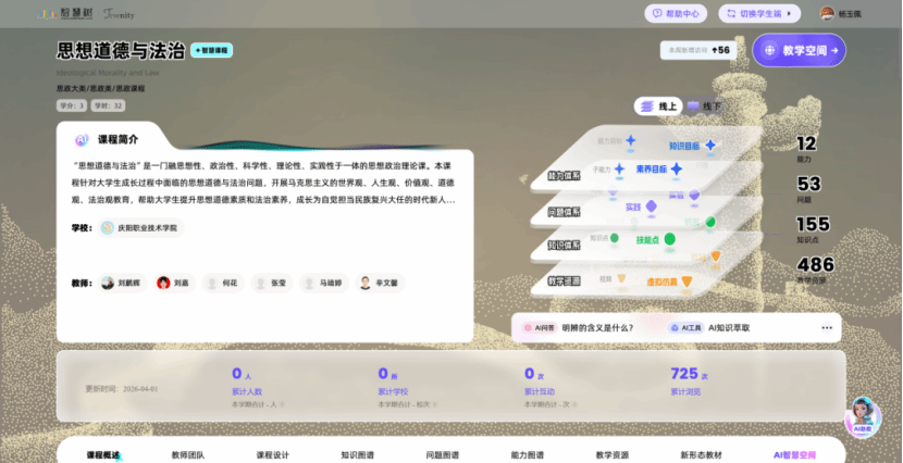 本次升级6门智慧慕课打破传统慕课“单向灌输”的教学局限,以AI技术重塑课程交互逻辑与能力培养路径,全方位重构“教-学-管-评-测”教学全流程,真正实现“千人千面”的精准教学。