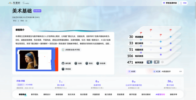 《美术基础》 立足美育普及与数字媒体设计人才培养,融合传统美术原理与AI设计工具,通过“理论精讲+案例解析+项目实操+思政浸润”四维教学,实现从“懂美”到“创美”的能力跨越。