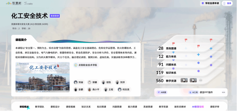 《化工安全技术》 作为石油化工技术等专业的核心课程,聚焦危险化学品、防火防爆、压力容器等关键内容,采用模块化结构与虚拟仿真、AI数字人“化小安”等多元教学手段,培养学生“安全第一、预防为主”的职业素养。