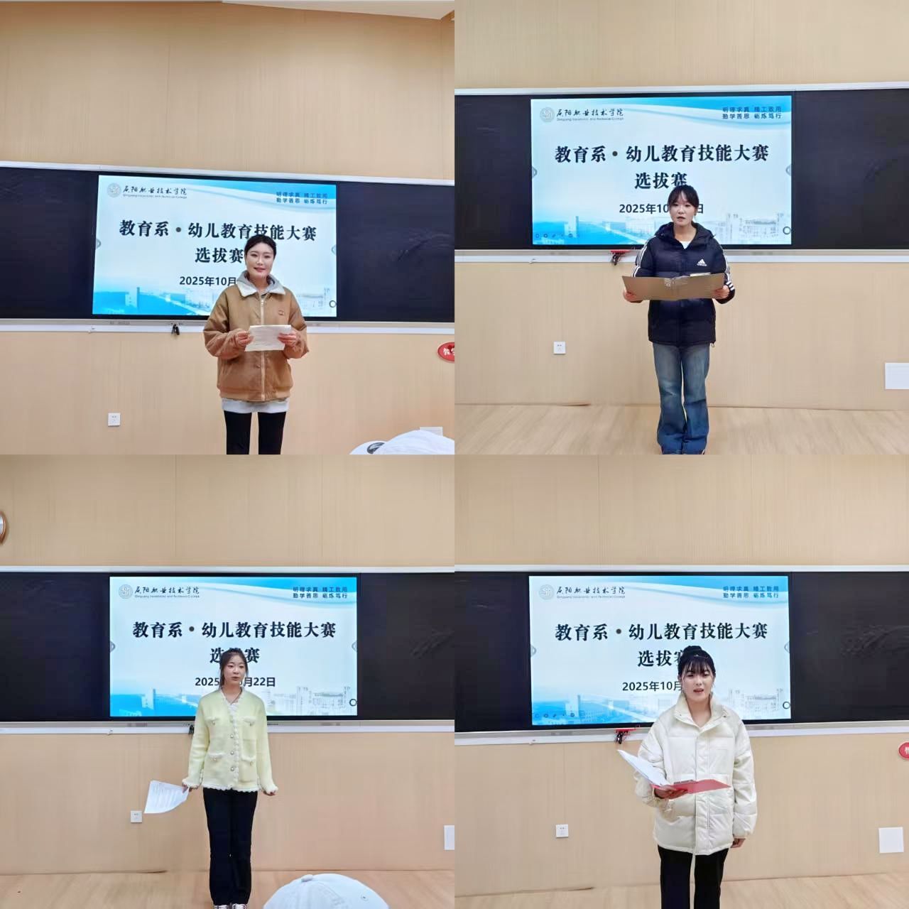 整个选拔赛过程组织严密、秩序井然。评委们本着公平、公正、公开的原则,对每位选手的表现进行了认真评审与打分。此次选拔赛不仅是一次技能的比拼,更是一次宝贵的交流学习和实践锻炼机会,有效激发了学生的学习热情,达到了“以赛促学、以赛促练、以赛促教”的预期目的。脱颖而出的优秀选手将代表教育系,由专业教师进行指导,参加校级、省级技能竞赛,力争为系部和学院赢得荣誉。