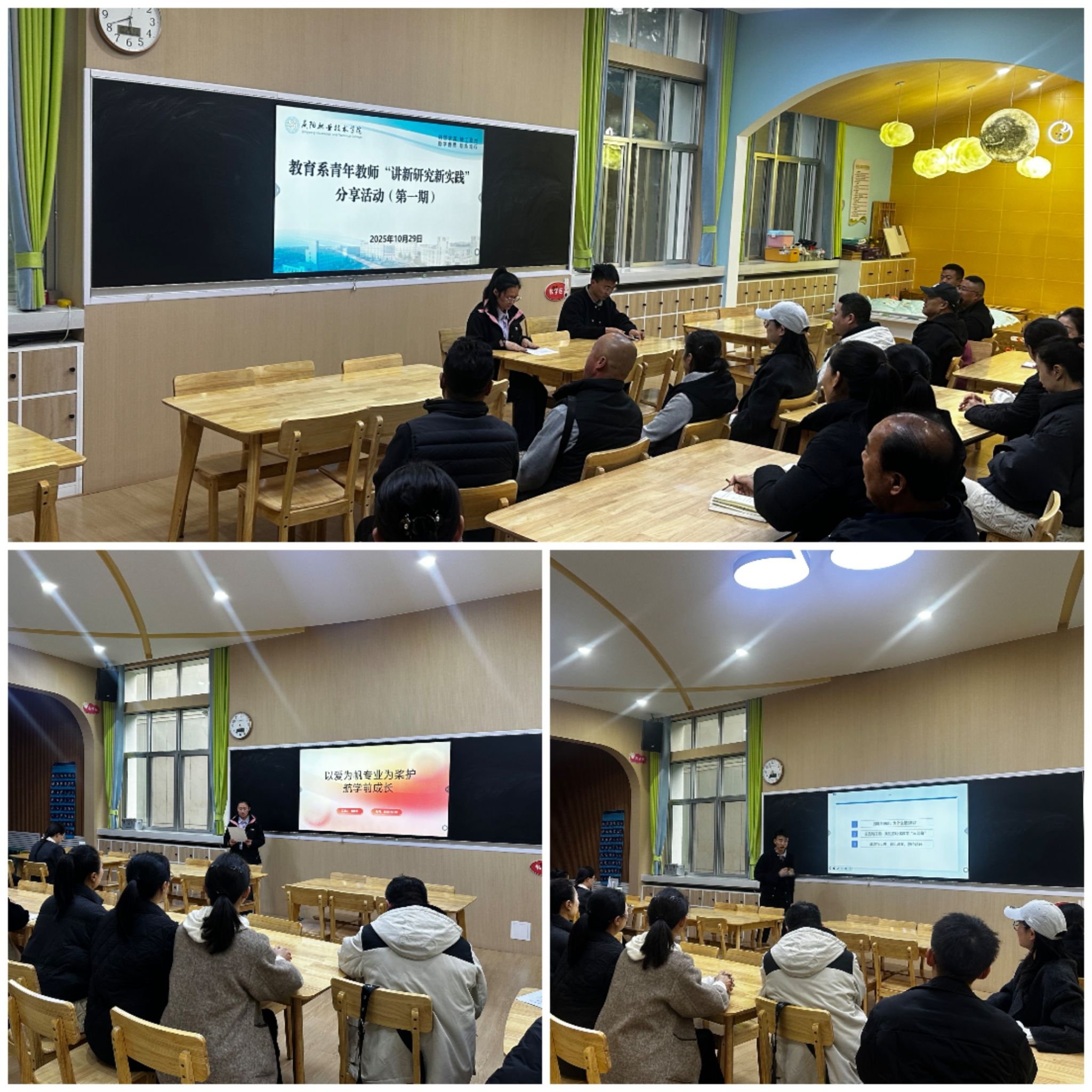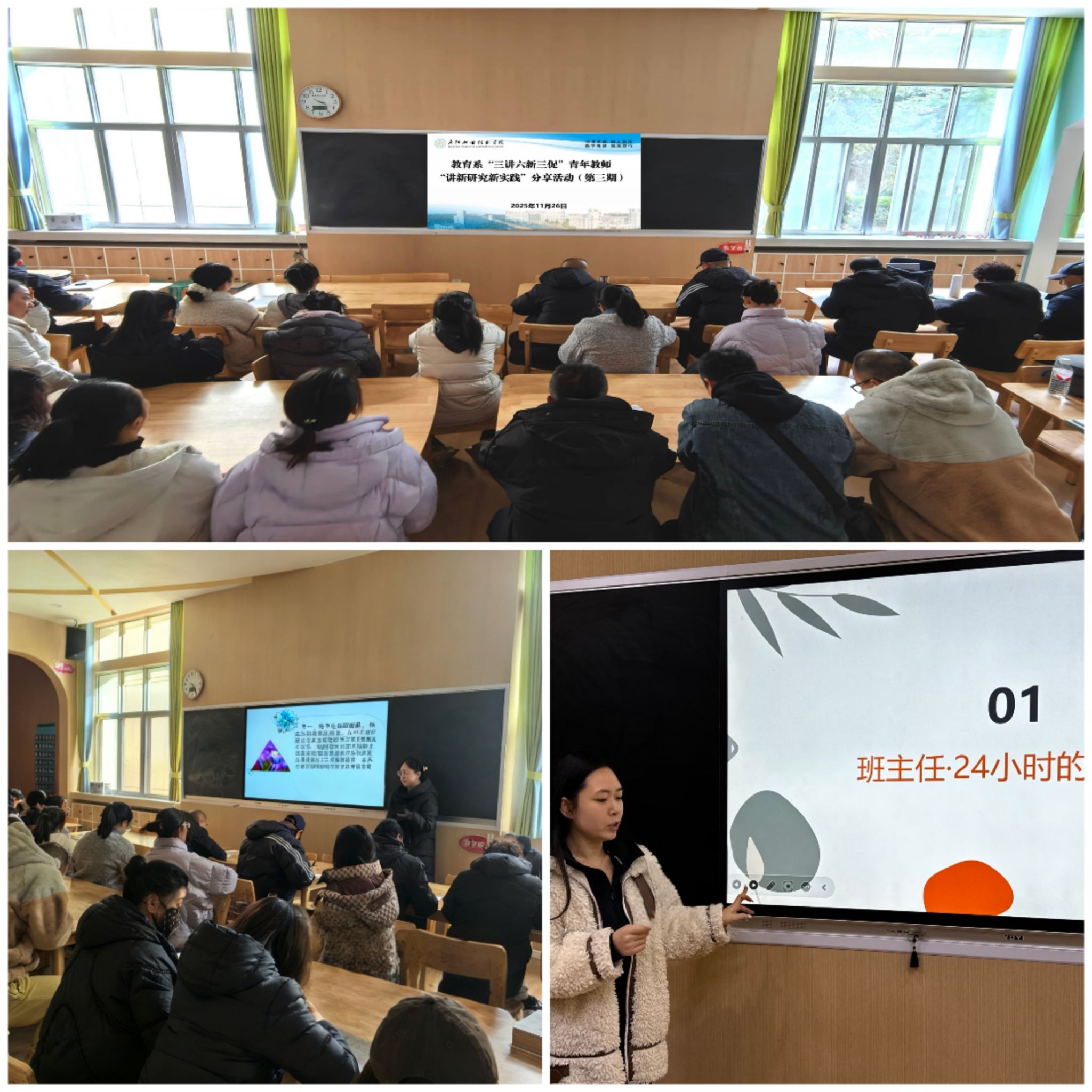 为深入落实学院“三讲六新三促”活动要求,着力打造“双师型”青年教师队伍,教育系常态化推进“青年教师讲新研究、新实践”交流分享活动。截至目前,活动已顺利开展三期,6名青年教师立足教学一线与工作实际,分享前沿理念、实践经验与创新成果,在全系营造了“比学赶超、求真务实”的良好教研氛围。