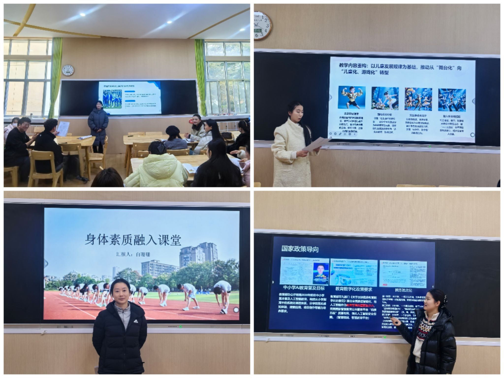 石海星围绕高职院校体育教育与学生职业素养融合路径展开分享,为体育教学赋能职业人才培养提供新方案;杜海梅紧扣儿童发展规律,分享学前教育舞蹈课程从“舞台化”向“儿童化、游戏化”转型的实践路径。白珊珊带来身体素质融入课堂的创新方法,实现学生“智育”与“体育”协同发展;曹毅毅聚焦AI工具赋能学前教育的实践应用,为专业数字化转型开拓新思路。