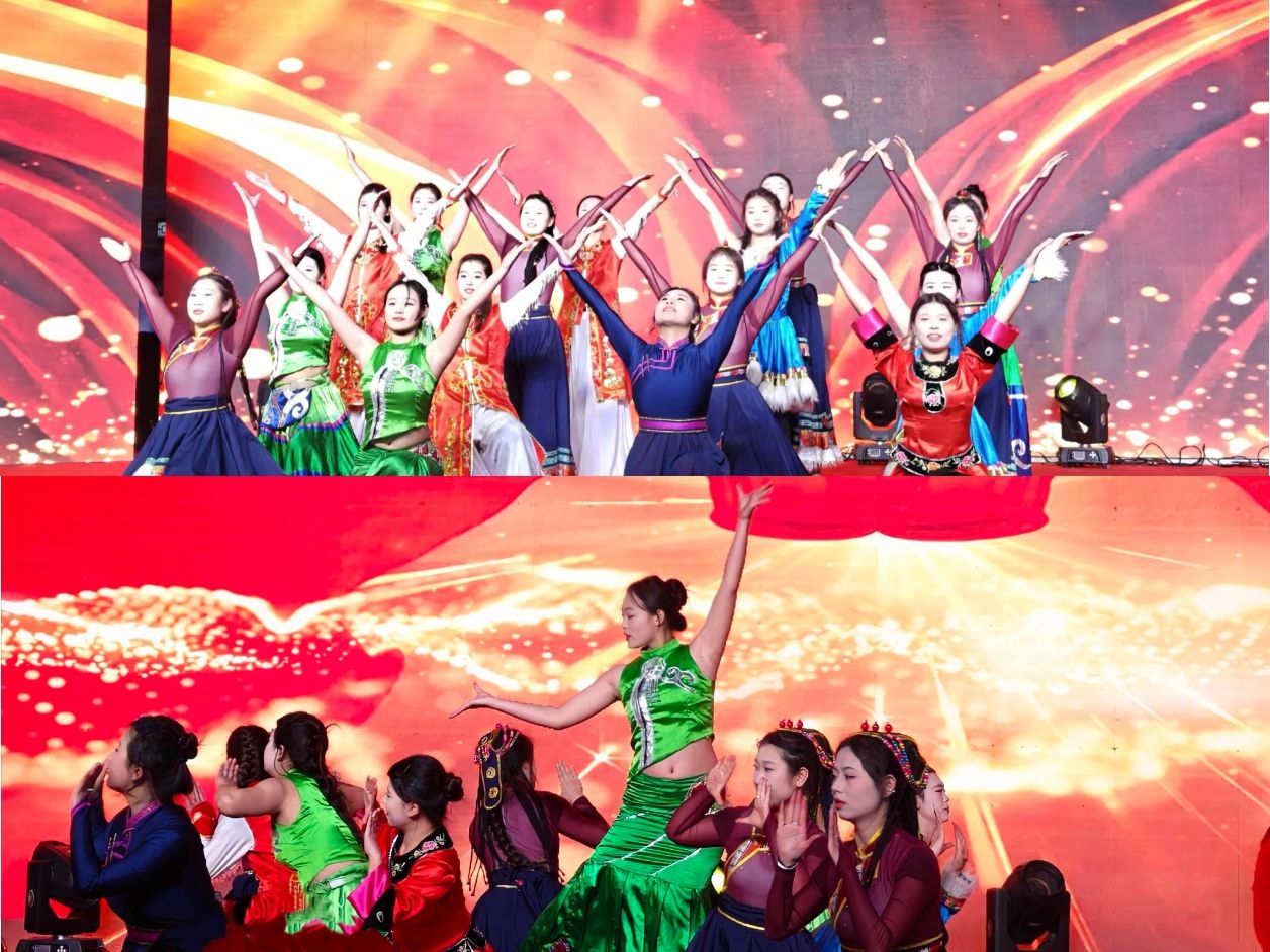 当晚,司官寨村文化广场灯火璀璨、人声鼎沸。在节目展演环节,教育系学子身着节日盛装,伴随着激昂的旋律翩翩起舞。舞蹈《母亲是中华》以恢弘的气势和细腻的情感,表达了中华儿女对祖国母亲的深情眷恋,传递着“中华民族一家亲”的深厚情怀。学子们整齐舒展的动作、饱满真挚的表情,赢得了现场观众的阵阵掌声,成为晚会中一道亮丽的青春风景线。