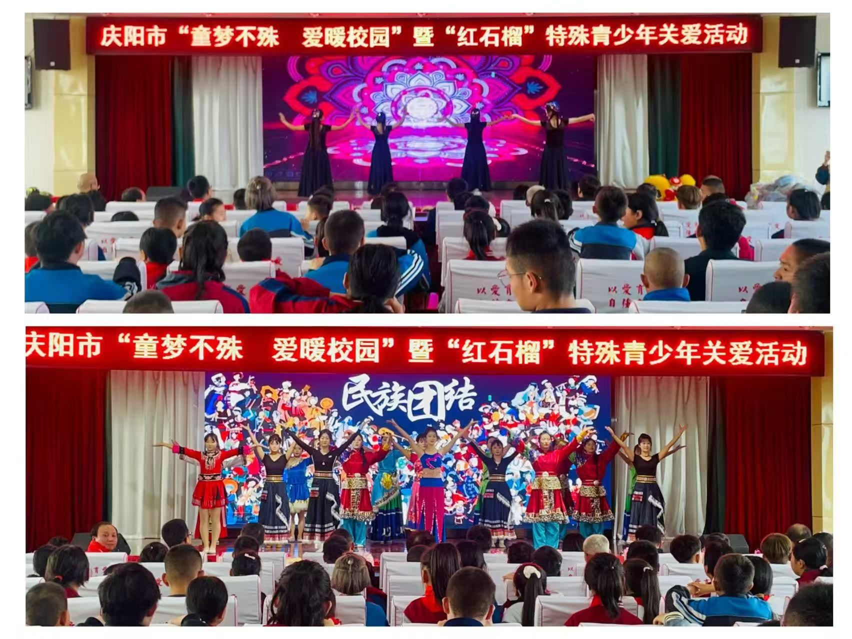 为深入贯彻习近平总书记关于关爱特殊困难群众和加强民族工作的重要指示精神,推动特教事业发展,10月15日,由团市委、市民宗委、市民政局、市少工委联合主办的庆阳市“童梦不殊 爱暖校园”暨“红石榴”特殊青少年关 爱活动在庆阳特殊教育学校温暖举行。庆阳职业技术学院教育系青年志愿者代表学院积极参与,为孩子们送上了真挚的关怀与精彩的演出。