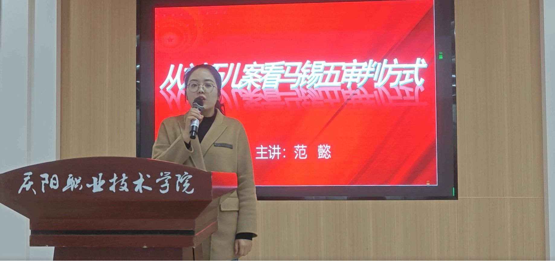 各位参赛教师依次登台竞技,各展所长。左婷老师以一张借据为切入点,见证了中国共产党人诚实守信、一心为民的革命信仰;马克思主义学院青年教师张莹老师在讲解《从南梁的梢林到新时代的星辰大海》时,结合庆阳本地革命根据地的创建历程,将刘志丹、谢子长等革命先辈扎根陇东、带领群众闹革命的事迹娓娓道来,其真挚的情感与生动的表达打动了在场每一位观众经过激烈角逐,张莹老师最终斩获一等奖,辛文馨个和李真仪两位老师获得二等奖,何花、左婷、柴瑞三名老师获三等奖
