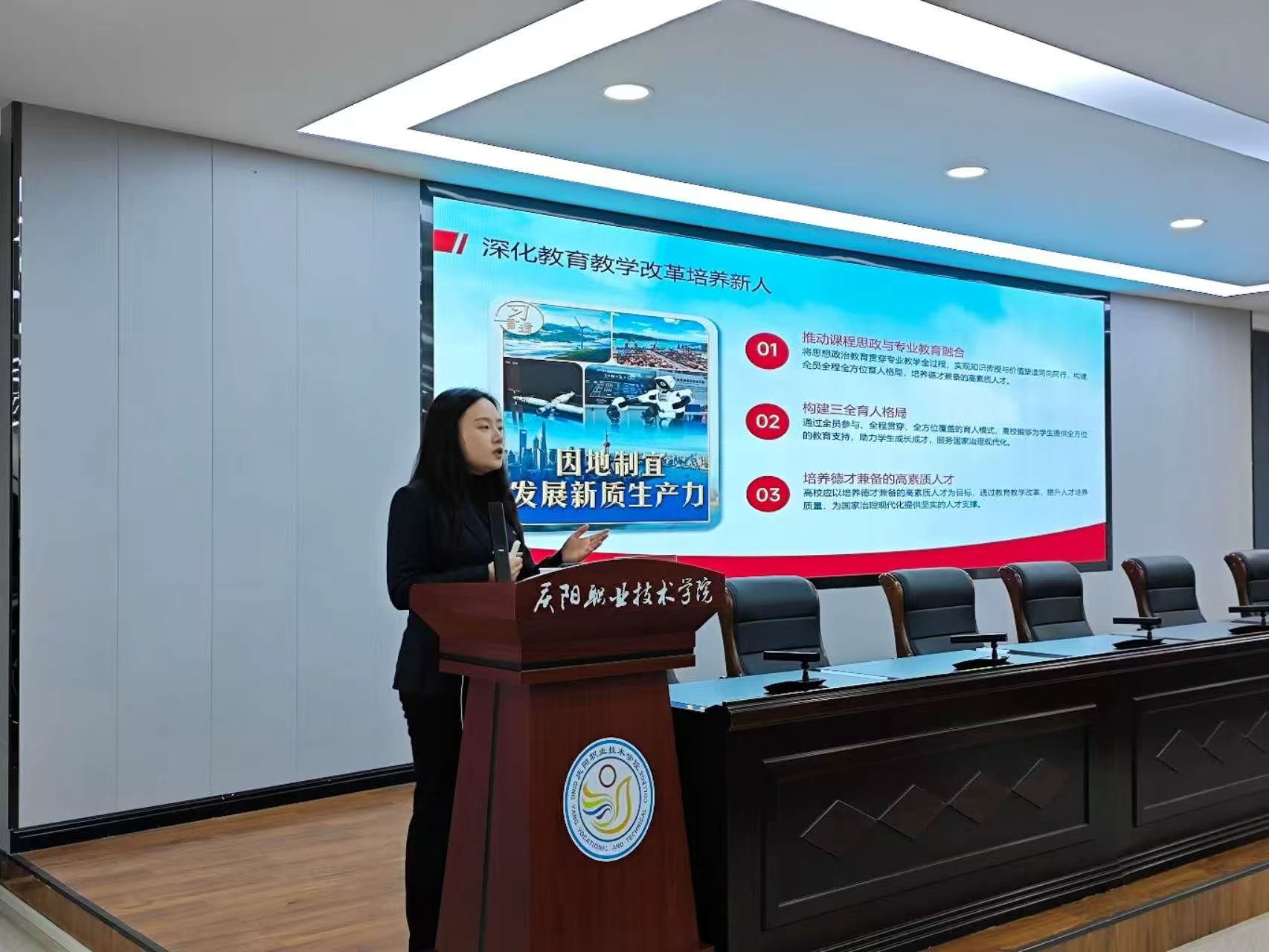 系列宣讲成效显著,既精准传达全会精神,面向“十五五”时期发展关键节点,解读全会重大意义、公报核心内容、新概念新论断及实践落实路径;又推动精神转化为行动方案,围绕青年师生投身国家治理现代化、高校治理创新路径、教学单位责任行动等议题深化研讨;更凝聚基层党建合力,夯实高质量党建引领人才培养、助力中国式现代化建设的思想根基,筑牢培育民族复兴时代新人的组织保障。此次宣讲是马克思主义学院发挥思政主阵地作用的生动实践,为学校在新征程上深化思政育人、推进事业高质量发展提供了坚实思想引领。