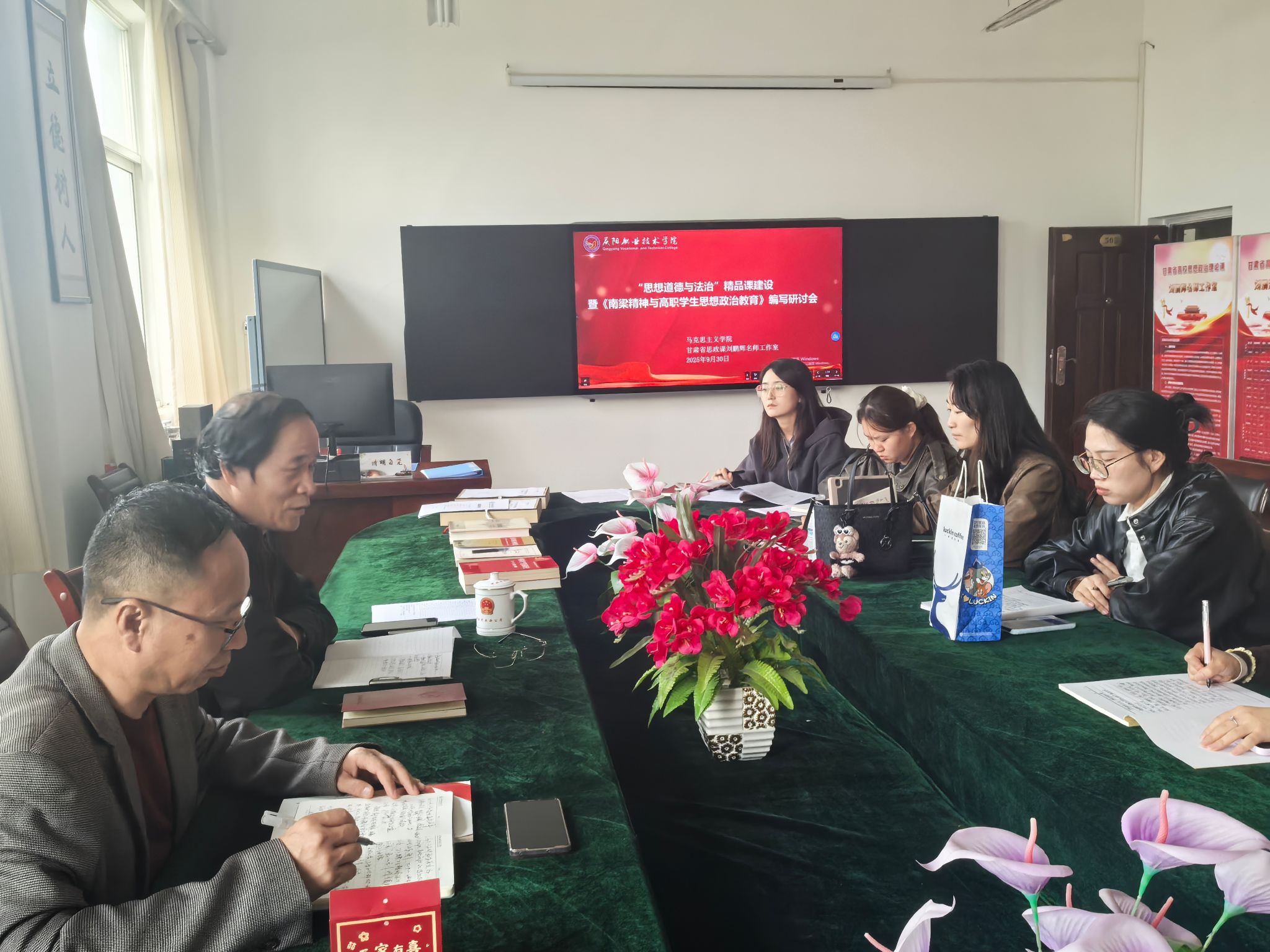 为深入推进思想政治理论课改革创新,夯实“思想道德与法治”课程育人实效,同时挖掘南粱精神在高职思政教育中的时代价值。2025年9月30日,“思想道德与法治”精品课建设暨《南粱精神与高职学生思想政治教育》编写讨论会在树人楼505举行,会议由刘鹏辉院长主持,全体青年教师参加。
