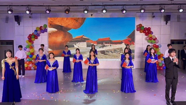节目环节精彩不断,高潮迭起。能源化工系以合唱《北京欢迎你》温情开场,用熟悉的旋律传递出真挚的欢迎之情;公共管理系带来的中国舞《清平乐》《一梦敦煌》,将古典意蕴与艺术表达完美融合,尽显中华文化的深厚魅力;朗诵《请党放心,强国有我》则字字铿锵、意气风发,彰显出青年一代的使命与担当。数字信息系同样表现亮眼,哑剧《攀比》以无声的表演引发深刻反思,走秀《锦绣东方・旗韵华章》则演绎出东方服饰的典雅与风韵。