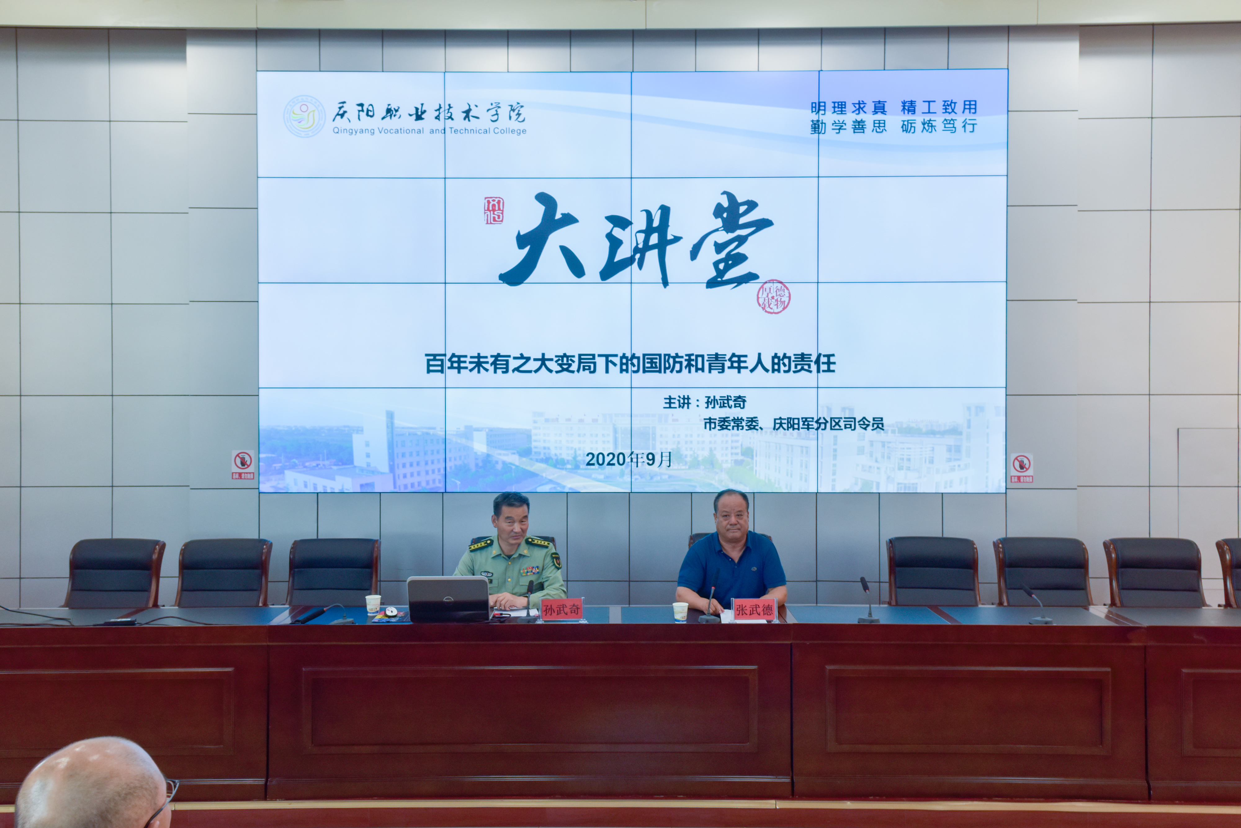 为全面贯彻党的十九大关于加强全民国防教育战略部署,增强学院师生的国防意识,培育爱国主义精神,9月16日下午,学院邀请市委常委、庆阳军分区司令员孙武奇为“庆阳职院大讲堂”第二十四期作了题为《百年未有之大变局下的国防和青年人的责任》...