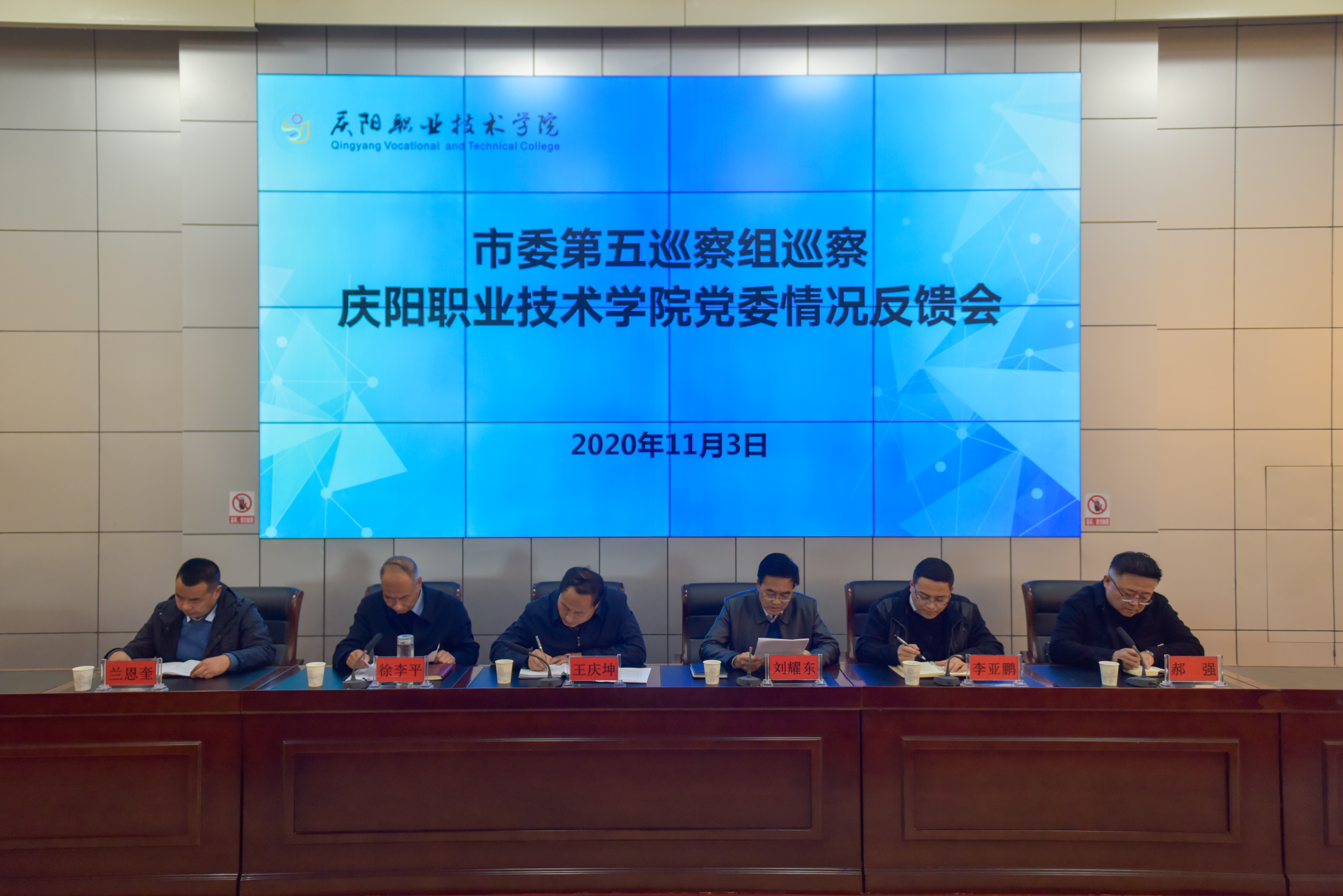 根据市委巡察工作统一部署,11月3日下午,市委第五巡察组巡察庆阳职业技术学院党委情况反馈会议在学院多媒体报告厅召开。市委巡察工作领导小组成员、市纪委常委、市监委委员、市委巡察办主任王庆坤,第五巡察组组长刘耀东,...