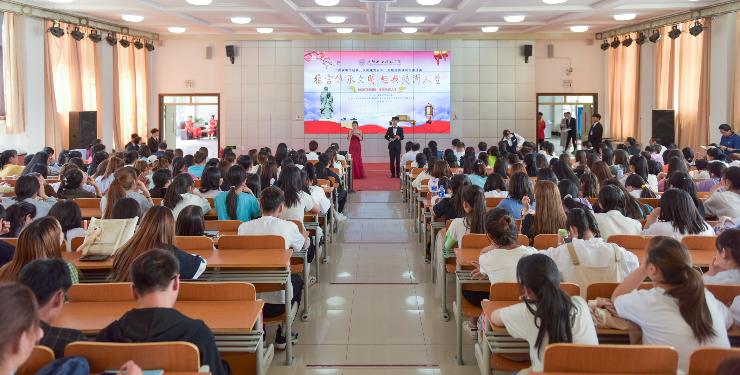 5月27日下午,我院庆祝建党100周年“传承中华文化 庆祝建党百年”经典诵读比赛决赛在大学生活动中心举行。学院在家领导、各处室、系部(院)负责人、院语言文字委员会成员、语文教研室全体教师及学生代表300余名师生齐聚一堂,...