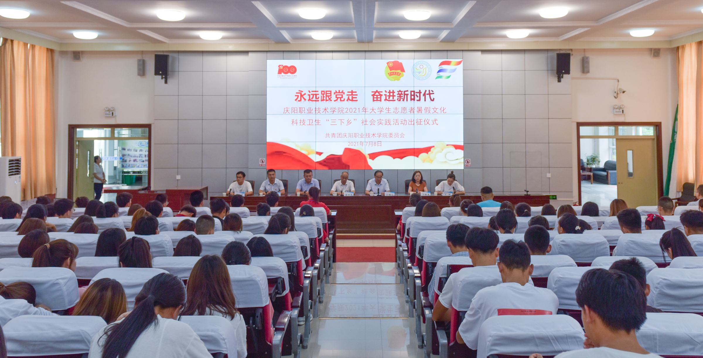 7月8日,我院在多媒体报告厅举行“永远跟党走、奋进新时代”庆阳职业技术学院2021年大学生志愿者暑期文化科技卫生“三下乡”社会实践活动出征仪式。党委书记徐李平,党委委员、副院长白旭宁出席,学院党政办公室、宣传统战部、...