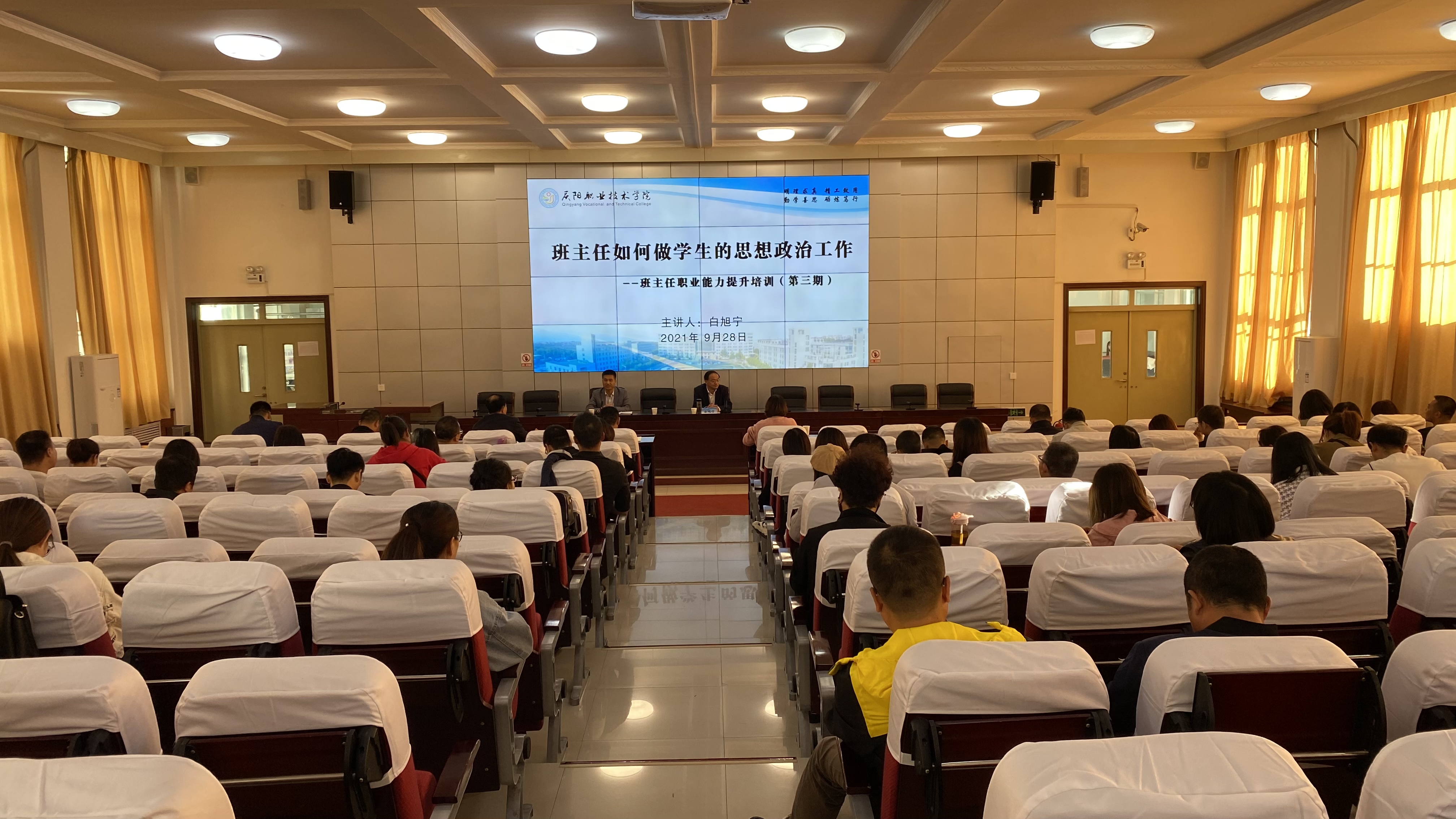 9月28日下午,我院第三期辅导员(班主任)职业能力提升专题培训班在学术报告厅举行。院党委委员、副院长白旭宁应邀以《如何做好大学生思想政治工作》为题作专题讲座,全体班主任加本次培训。学工处处长李永刚主持会议。...