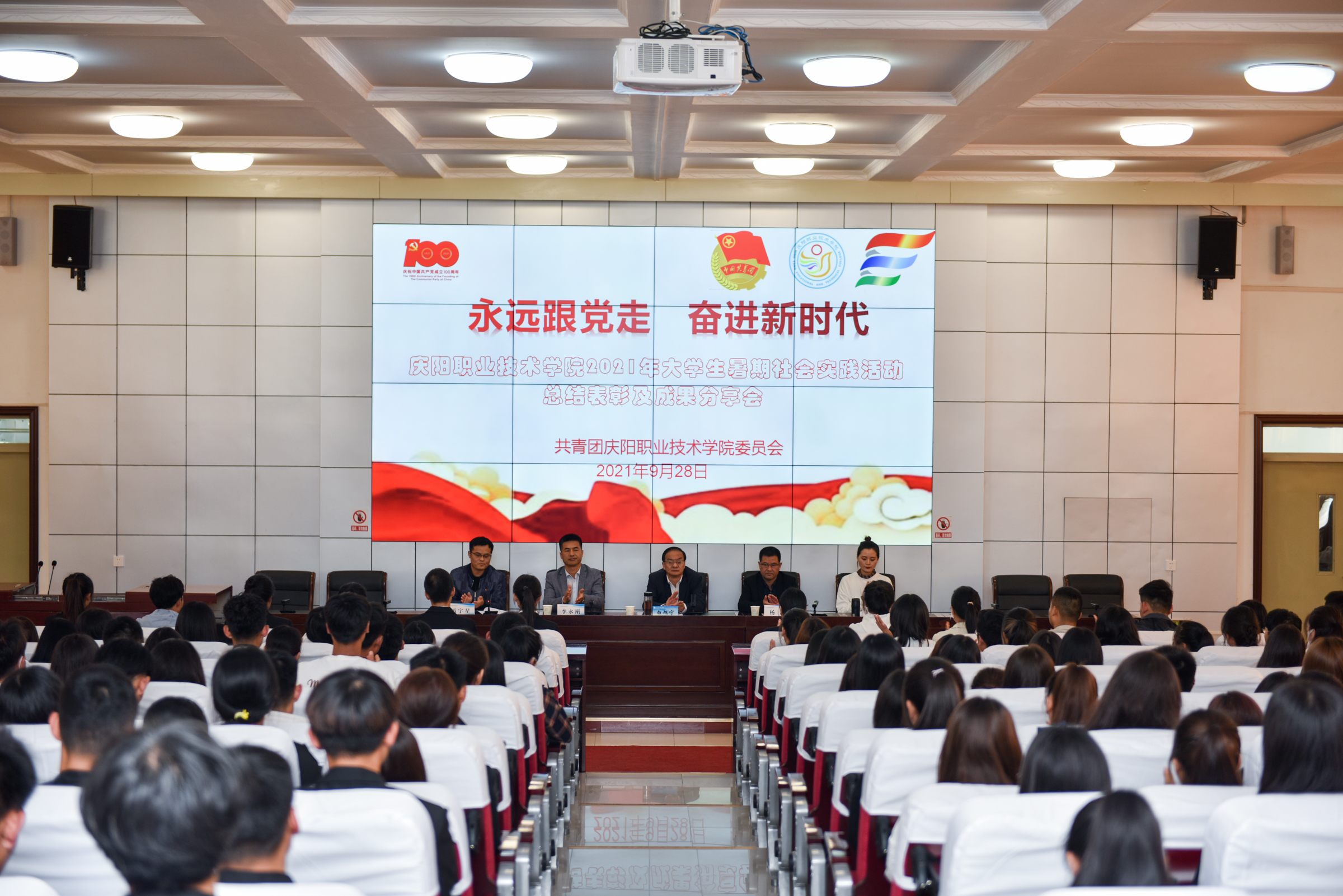 9月28日下午,“永远跟党走、奋进新时代”庆阳职业技术学院2021年大学生暑期社会实践活动总结表彰及成果分享会在多媒体报告厅召开。党委委员、副院长白旭宁,教务处处长杨琳、学生工作处处长李永刚、院团委班子成员、...