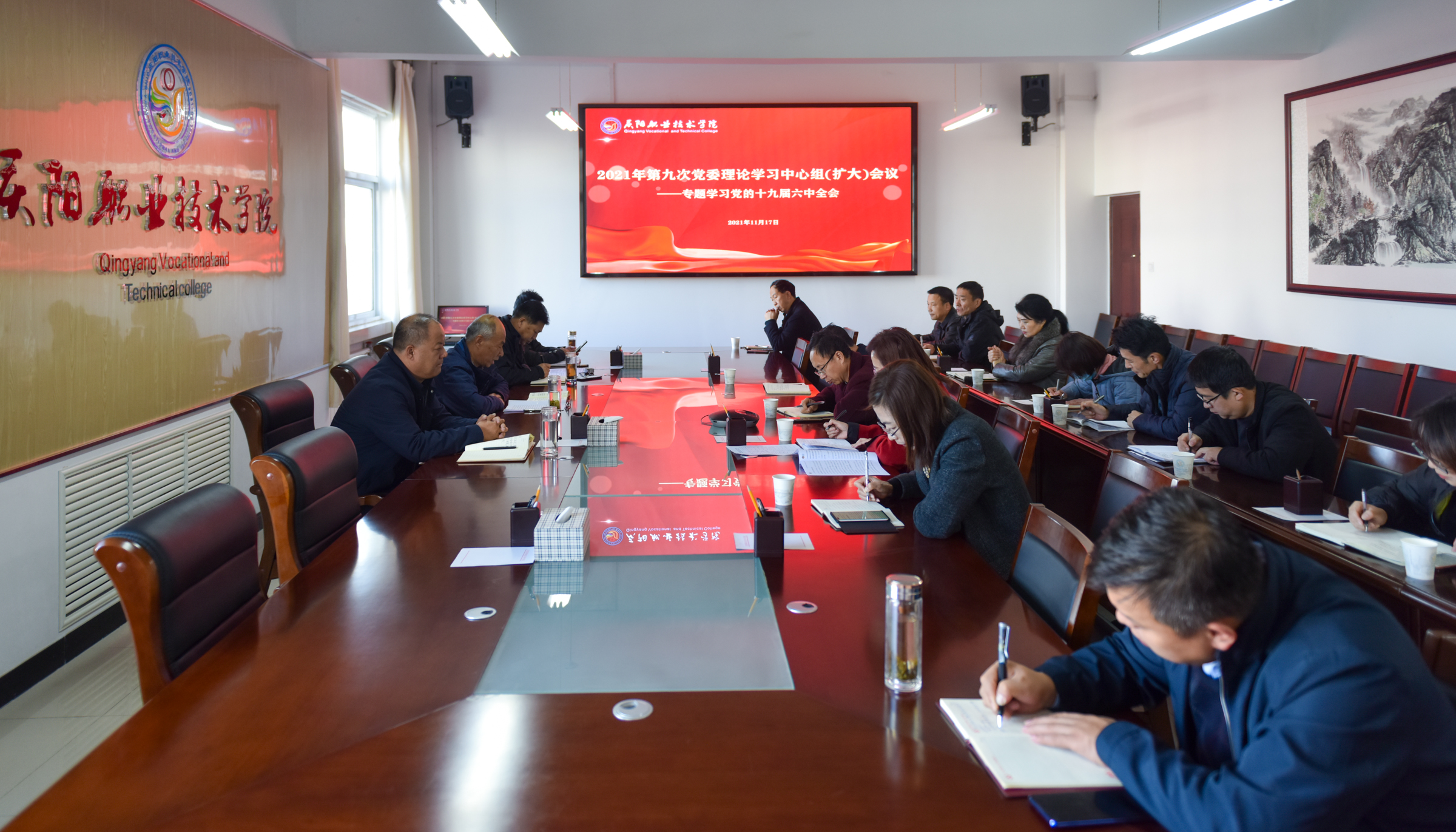 11月17日上午,学院召开2021年第九次党委理论学习中心组(扩大)学习会议。在家党委委员、党委部门负责人、各党支部书记和工会、妇委会、团委负责人参会。党委书记徐李平同志主持会议。 党委委员、副院长曹强同志传达学习了党的十九届六中全会精神、...