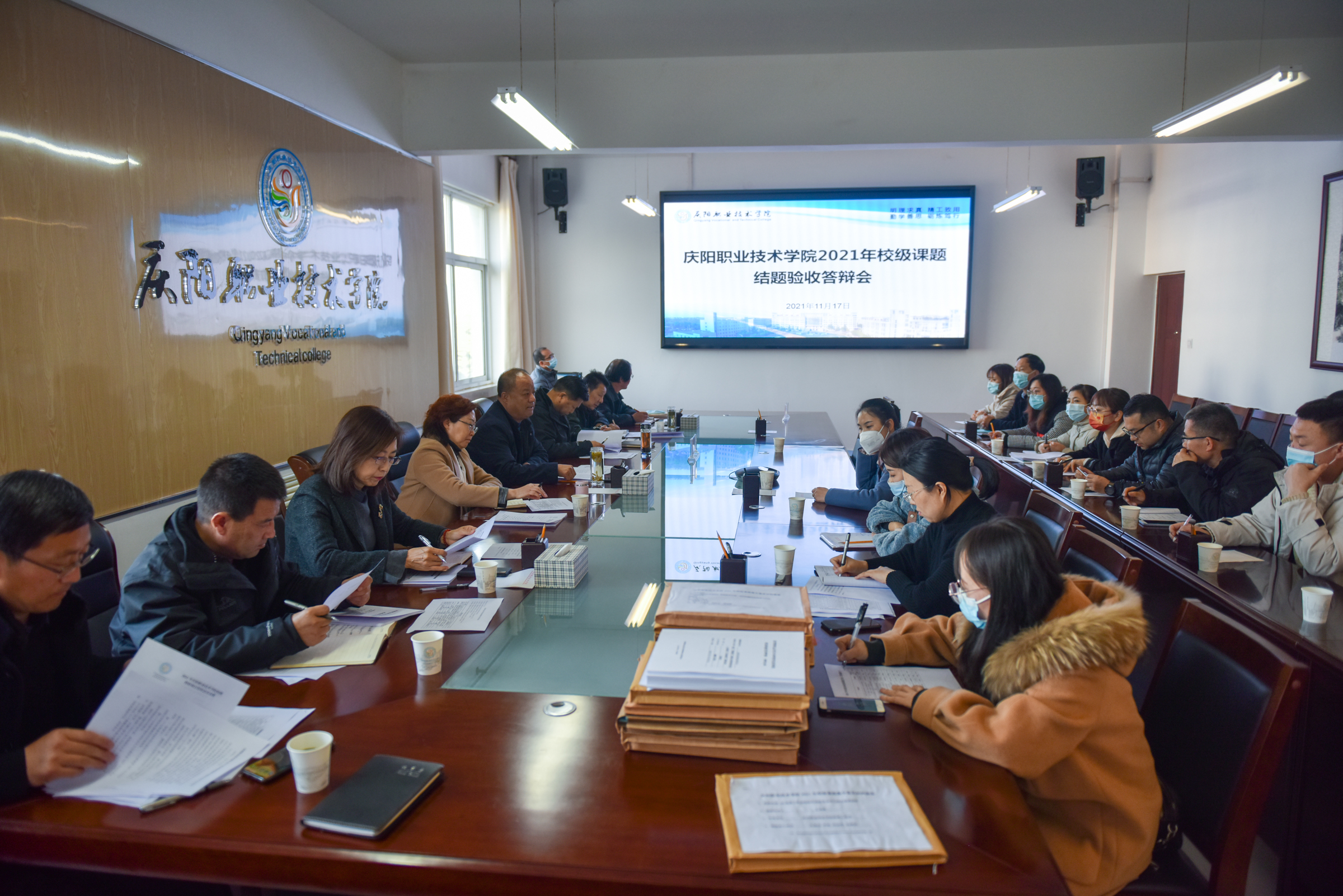 根据学院工作部署,依据《庆阳职业技术学院校级课题办理办法》文件要求,经过个人申请、系部初审、科研处审核,本次验收共接到符合结项申请材料14项,其中教改项目5项,一般课题9项。于11月17日组织召开2021年度庆阳职业技术学院校级科研项目结项集中评审会。...