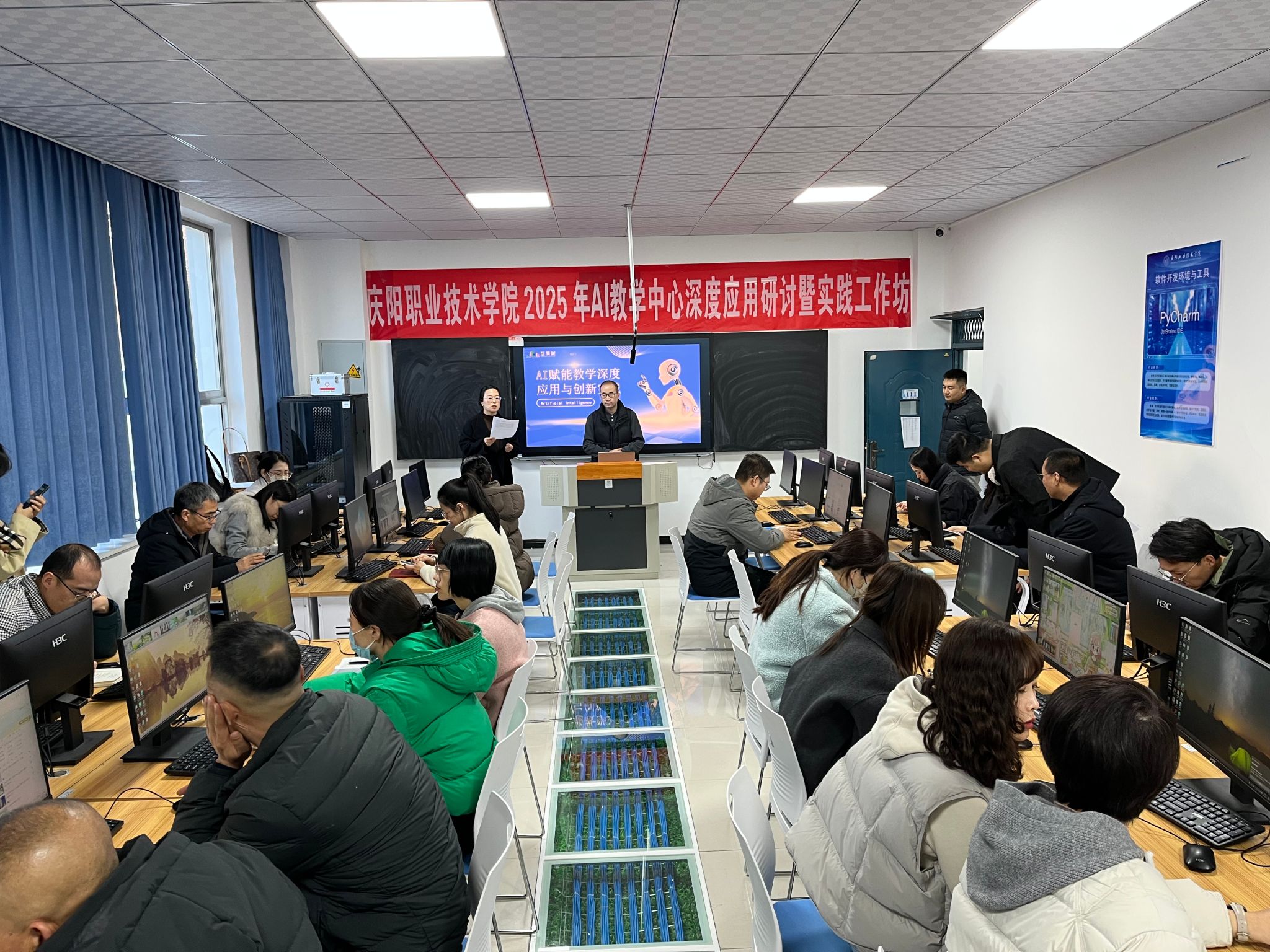 为深入贯彻落实“五金”建设与“新双高”任务要求,推动教育教学数字化转型升级,11月21日,庆阳职业技术学院举办数字赋能AI教学能力提升培训班。各教学单位教研室主任、专业带头人及近两年新入职教师齐聚一堂,共同探索人工智能赋能课堂教学的创新实践。智慧树AI事业部产品运营经理王亚鹏围绕平台功能展开专业培训。他结合教学实际场景,详细讲解了AI备课工具如何智能生成教案、课件模板、习题库并实现课程思政元素自动匹配;演示了虚拟仿真教学在多学科虚拟实验、...
