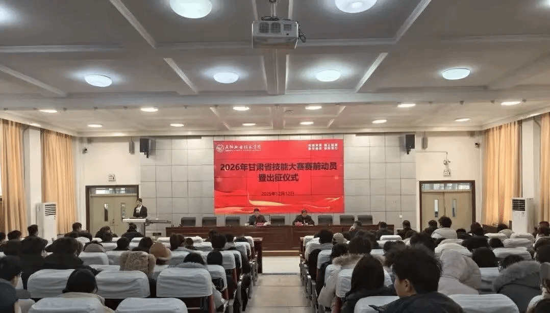 12月12日,庆阳职业技术学院在组织集中收看2026年甘肃省职业院校技能大赛开赛仪式后,随即举行学院赛前动员暨出征仪式。学院党委副书记、院长胡志玉出席仪式并作动员讲话,党委委员、副院长王志强主持仪式。各教学单位负责人、参赛师生代表共计200余人参加。会上,数字信息系教师张斌轩作为指导教师代表发言,他分享了技能大赛对学生实践能力提升的关键作用,并鼓励参赛学生要以积极的态度面对比赛,将所学知识和技能发挥到极致。文化旅游系学生麻蔚芬作为参赛学生代表发言,...
