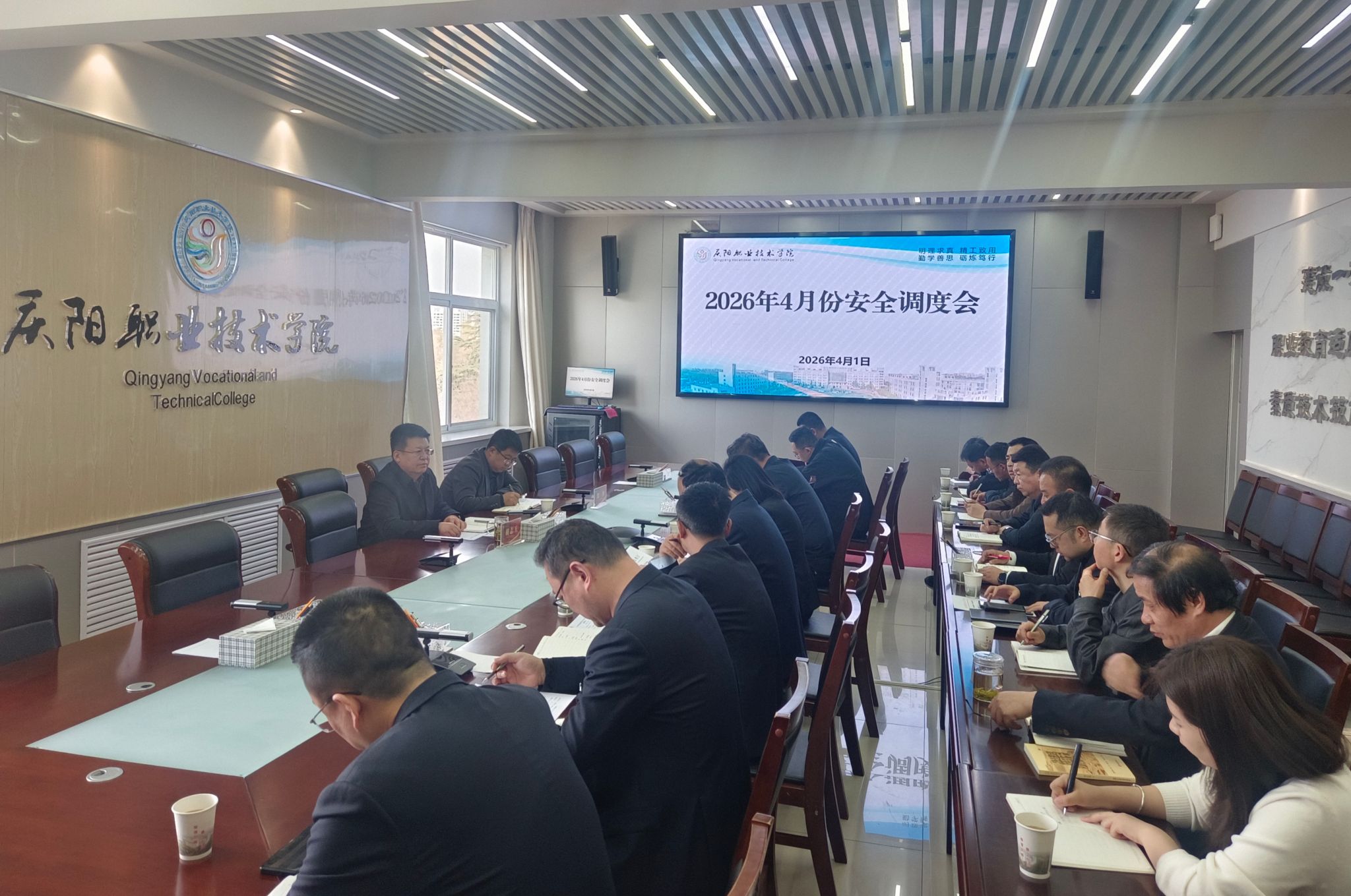 为深入贯彻落实上级关于校园安全稳定工作部署要求,持续压紧压实安全责任,全面排查整治风险隐患,4月1日下午,庆阳职业技术学院召开4月份安全调度会。党委副书记、院长胡志玉出席会议并讲话,相关部门及各系(院)负责人参加会议,党委委员、副院长郭伟主持会议。会上,安全管理处传达了上级文件精神及3月19日省教育厅校园安全稳定工作调度会议要求,通报了开学以来校园安全工作推进、隐患排查整治以及“五大体系”建设与运行情况。...