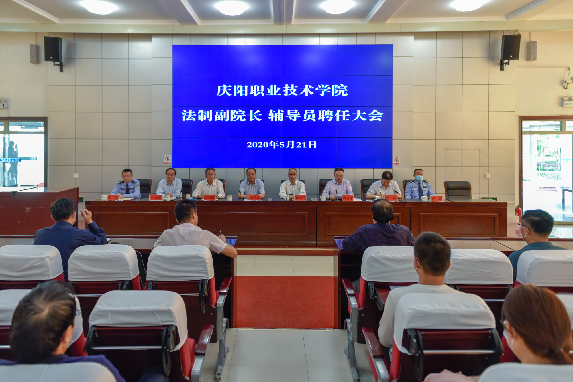 5月21日下午,学院召开法制副院长、辅导员聘任大会。西峰区副区长、公安分局党委书记、局长肖建军,后官寨派出所所长、二级警长李岩,学院在家班子成员出席。全体中层干部、班主任及学生代表共计300余人参加。...