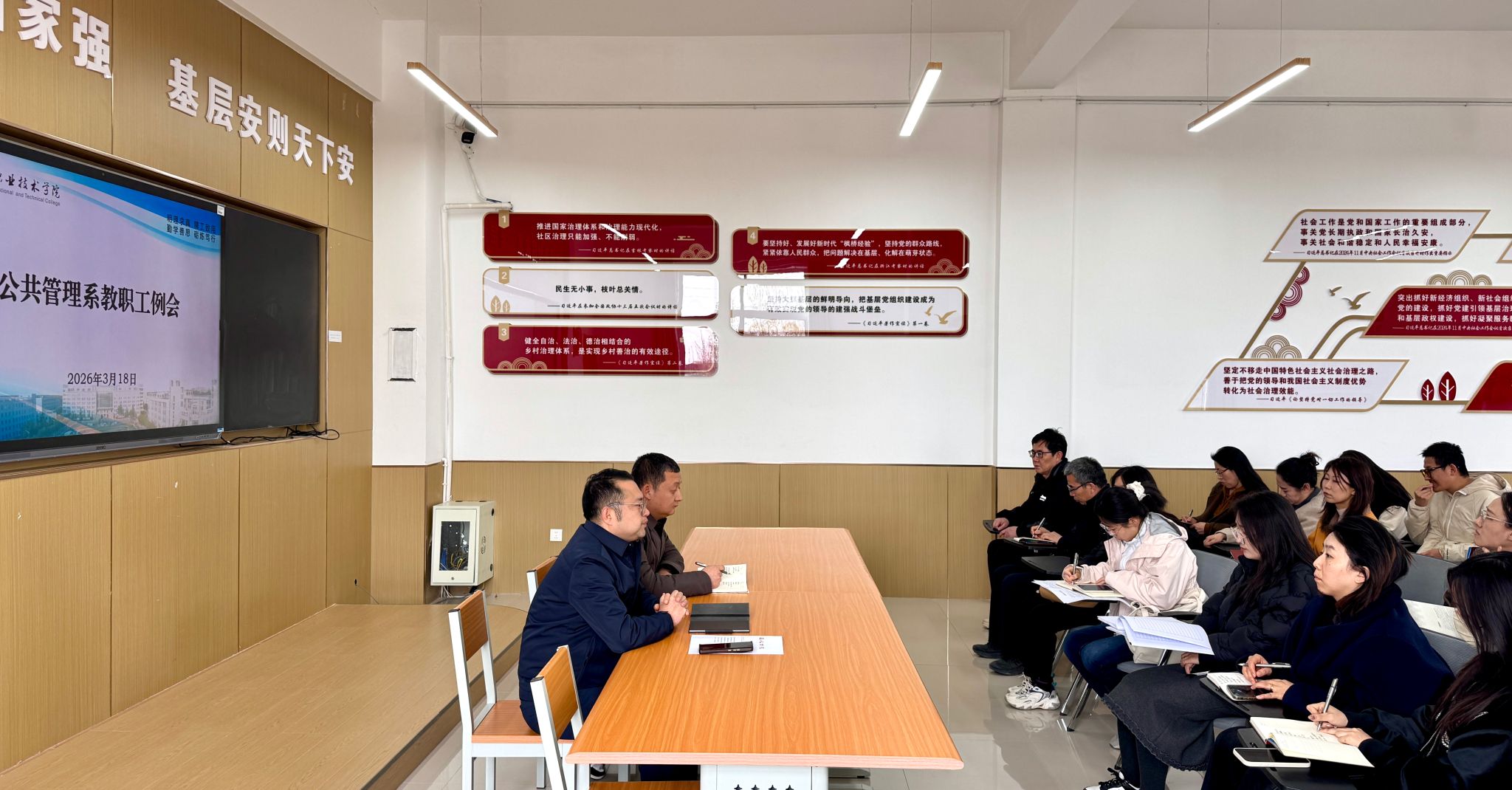 为总结回顾前期工作,安排部署后期工作,学习交流考察成果,2026年3月18日,公共管理系召开了第二次教职工例会。系主任李剑领学了教育部《关于深化职业教育教学关键要素改革的意见》文件精神和政策解答等内容。引导全体教师要深刻把握国家职业教育改革发展新形势,支持教师积极投身教学改革实践,以高质量教学支撑我系内涵建设、特色发展。李剑针对学生迟到、旷课、交手机、染发、教室卫生、前排空座、桌椅摆放等常规问题进行了强调和要求。...