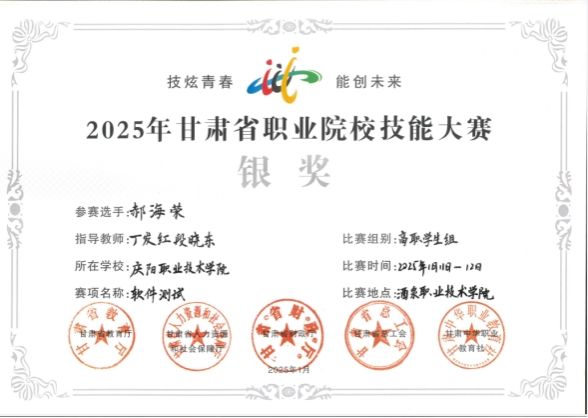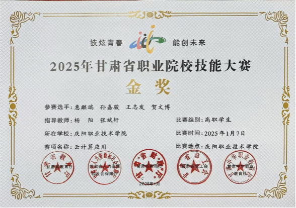 技能竞赛捷报频传,师生团队在2025年数字中国创新大赛、全国信息通信技术大赛中获国家级三等奖3项,参加全国大学生数学建模大赛获省级特等奖1项、参加甘肃省职业院校技能大赛金奖1项、银奖2项,铜奖3项,一名学生获“甘肃省技术标兵”荣誉称号。教科研成果丰硕,师生在省级以上刊物发表论文7篇,6项市厅级课题成功立项,校级课题结项3项,立项6项,16篇文章在校办刊物《匠心》发表。