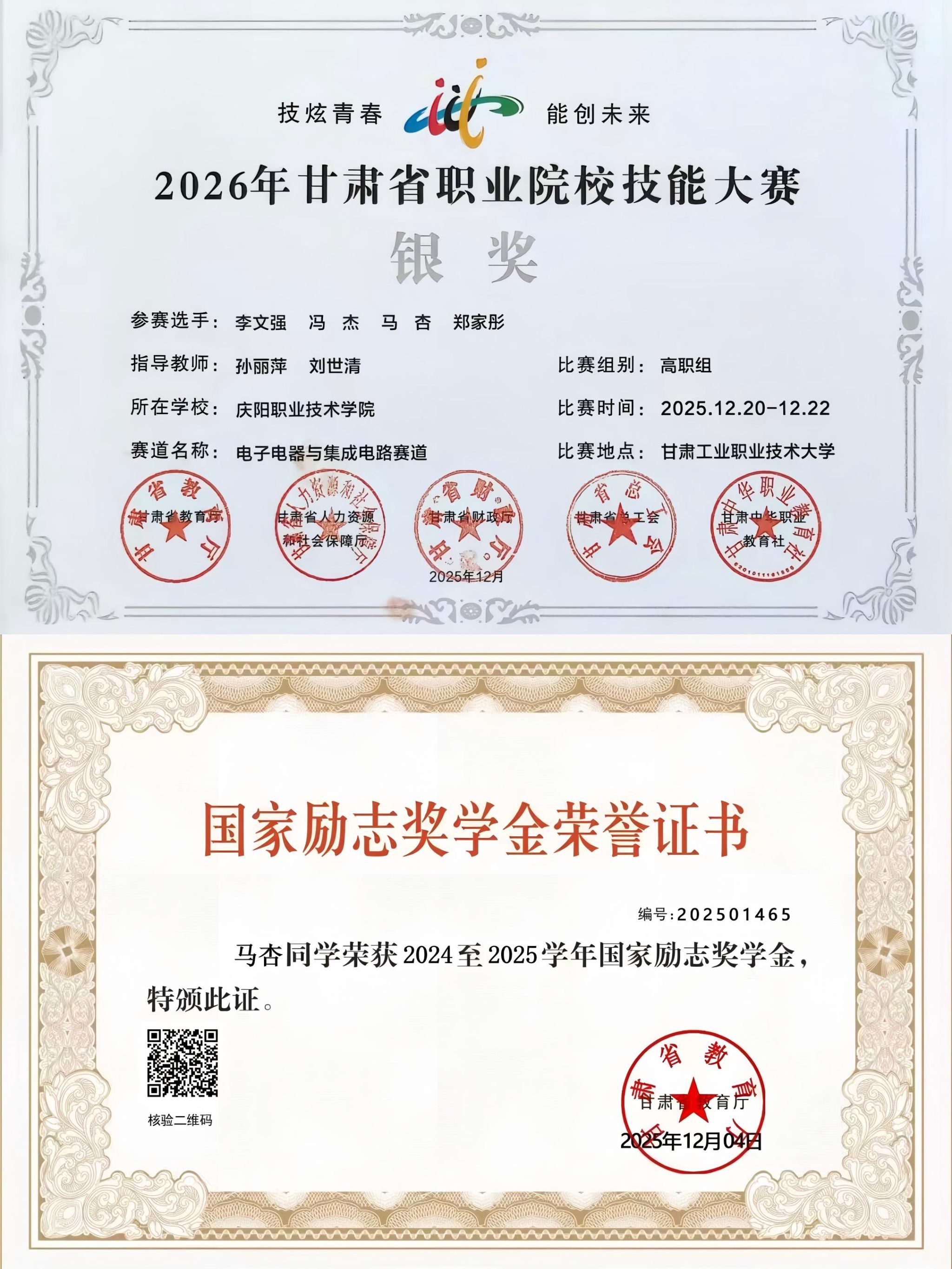 在庆阳职业技术学院数字信息系,2024级计算机网络技术2班学生马杏,用成长诠释了职业教育的无限可能。曾经的她因成绩不佳陷入迷茫,曾经的她不敢当众发言;如今,她是自信从容的校园主持人、省级技能大赛银奖得主、国家励志奖学金获得者。