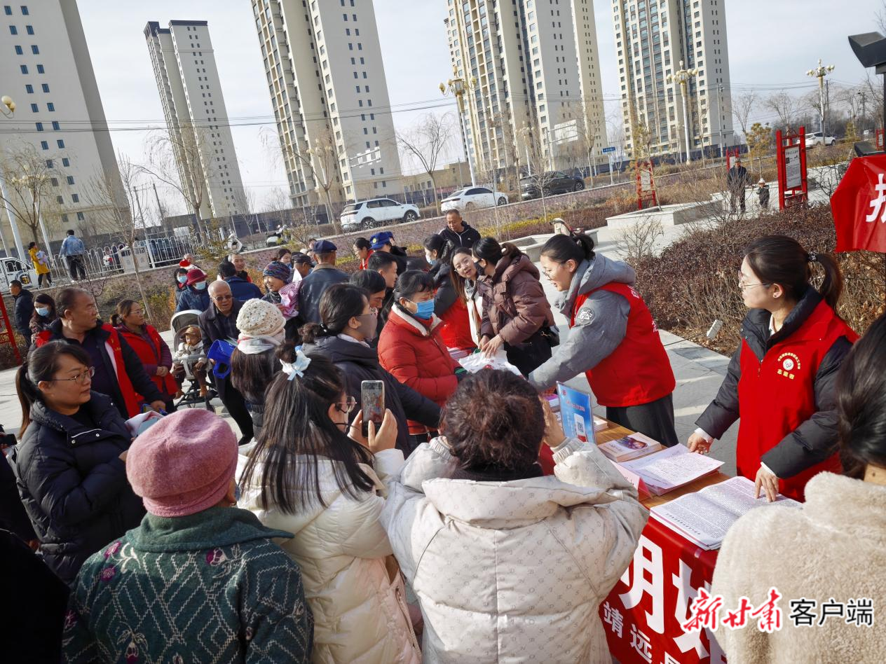 在白银市靖远县,返乡大学生们走进若笠乡富民社区,开展“送法进村居”志愿服务活动。