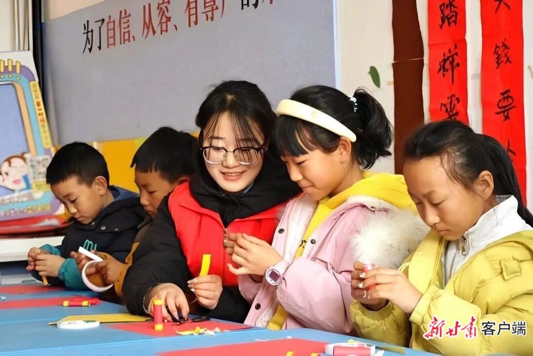 在庆阳市,返乡大学生们参与“共青团·伙伴计划”寒假爱心托管班活动。为孩子们提供系统的课业辅导、兴趣拓展与安全教育服务。(文中图片均由团省委提供)