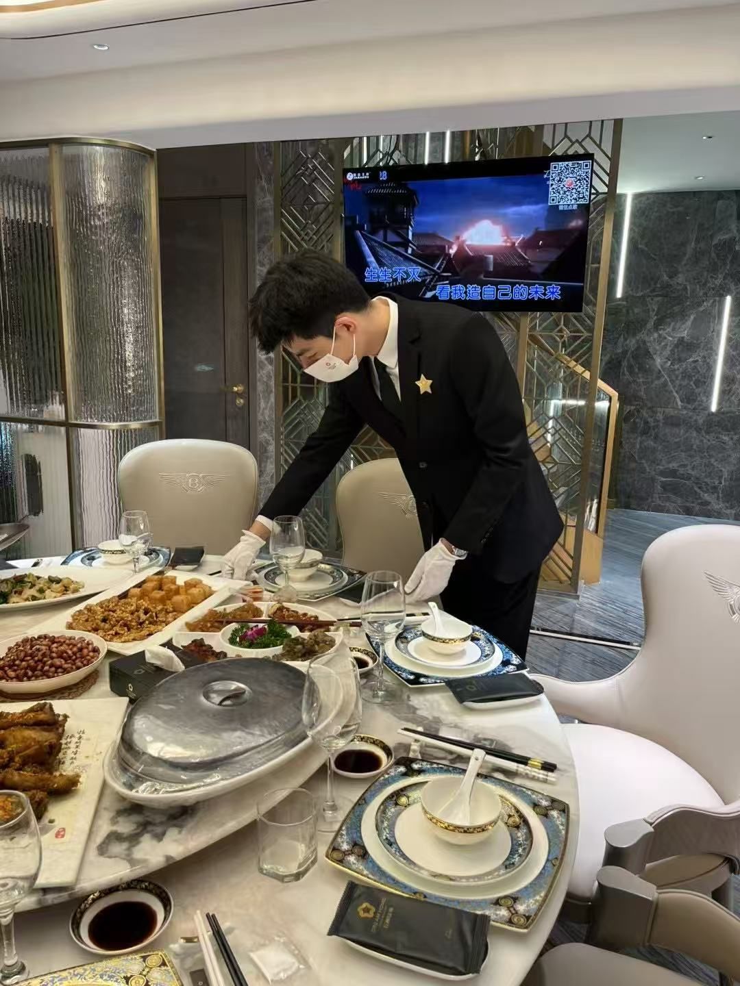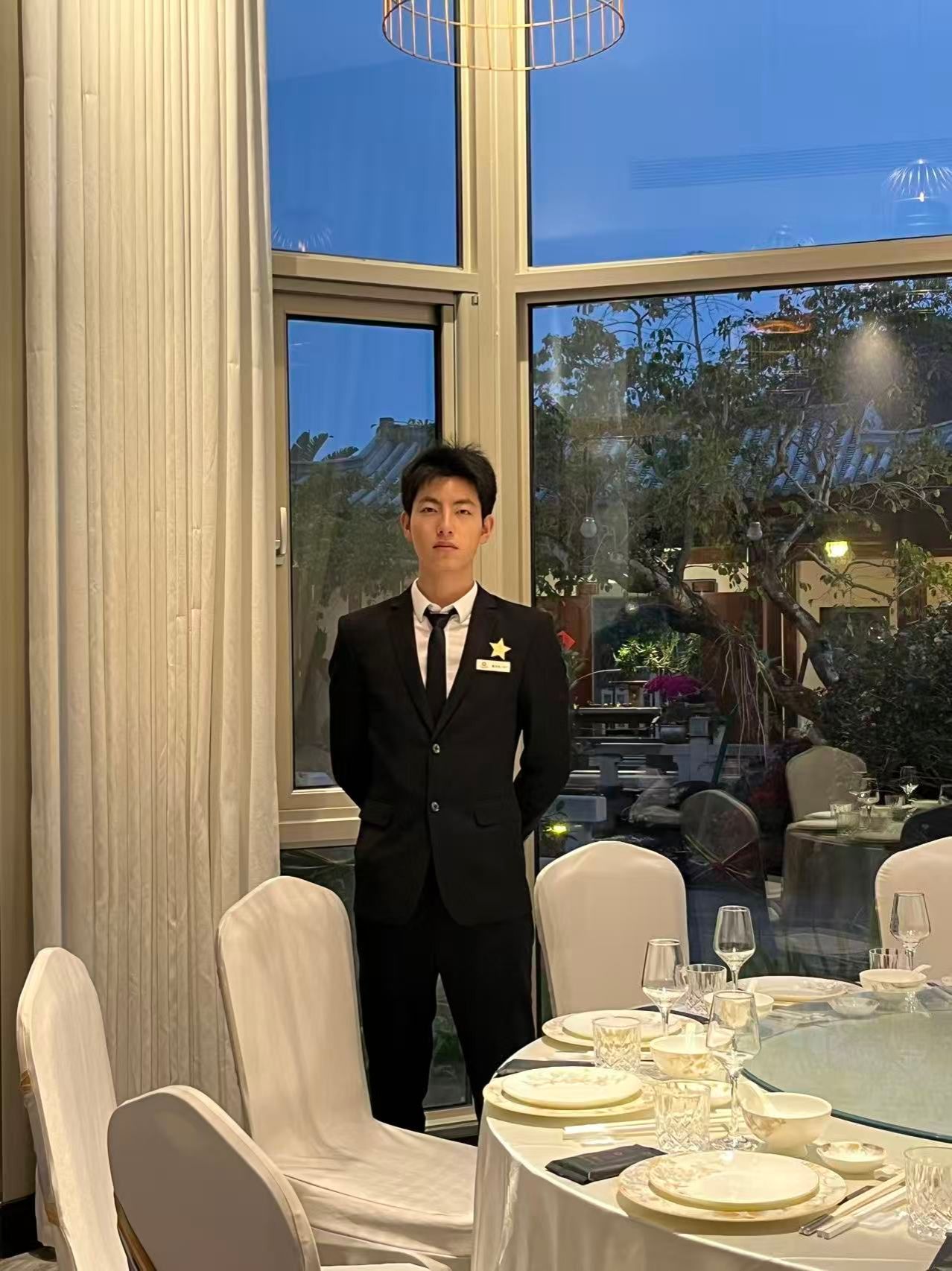 2025年7月。在校期间,曾获得过系极排球比赛二等奖。现在五洲大酒店担任餐饮部领班一职。在酒店餐饮部实习期间,迅速掌握了餐饮服务标准与流程,熟练完成中餐摆台、送餐及宴会等服务工作。微笑服务,确保客人获得良好体验。