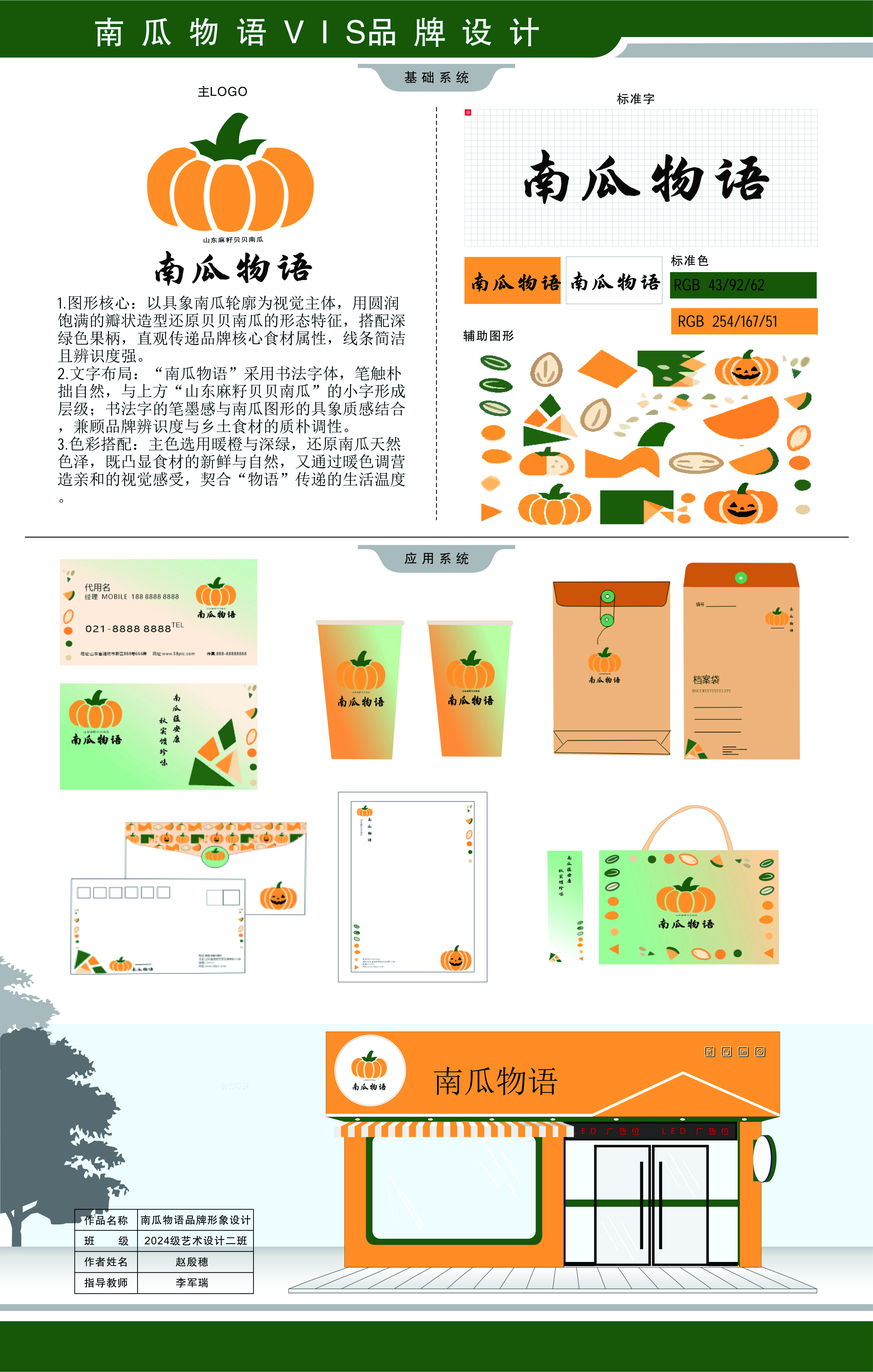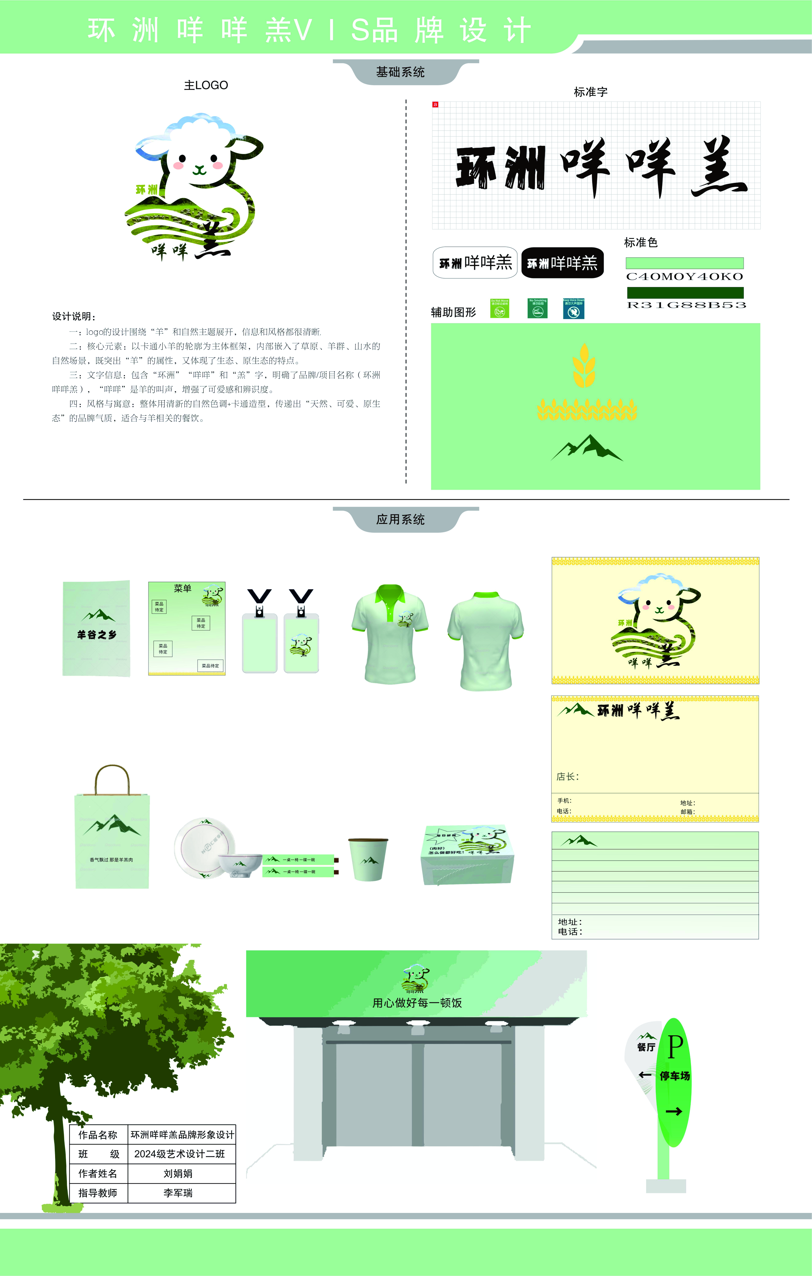 标志与 VI 设计作为艺术设计专业的核心课程,既是对视觉语言的系统训练,更是对 “实用美学” 理念的深度践行。在课程教学中,我们始终坚守 “以能力为本位、以实践为导向” 的培养原则,引导学生跳出纯艺术的桎梏,将市场需求、品牌逻辑与设计创意相结合。从品牌定位的调研分析,到标志图形的反复打磨;从基础系统的规范制定,到应用场景的落地适配,学子们在一次次草图修改、一轮轮方案论证中,不仅掌握了版式设计、色彩搭配、软件操作等专业技能,更学会了用设计思维解决实际问题,理解了 “设计为生活服务、为品牌赋能” 的深层内涵。 作品以农文旅融合为主旨,选题大多以农产品品牌设计为主。凝结着文化旅游系2024级艺术设计专业一二班学子们匠心与创意。或许它们尚显青涩,却饱含着对设计的热忱与思考:有的以极简线条传递品牌核心价值,有的用多元色彩诠释年轻活力,有的将传统文化元素融入现代设计语境,有的则聚焦可持续发展理念打造绿色视觉体系。这些作品背后,是他们熬夜绘制的草图、反复调整的参数、深入市场的调研,更是对 “精准表达、有效沟通” 设计原则的不懈追求。每一套 VI 设计,都承载着学子们对品牌形象的完整构想 —— 从标志到名片、从包装到环境导视,层层递进的视觉体系,展现着他们对设计规范性与系统性的理解,也彰显着高职院校艺术设计教育 “知行合一” 的鲜明特色。
