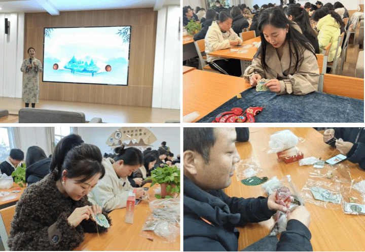 12月17日,党支部首先开展了非遗香包制作活动。活动伊始,专业老师为大家详细讲解了香包历史渊源、文化内涵以及制作技巧,并针对选材、配色、缝制到填充香料等步骤进行耐心示范,细致讲解。党员教师们认真聆听,穿针引线,精心缝制,既体验了传统手工艺的魅力,又感受到浓浓的党情温暖