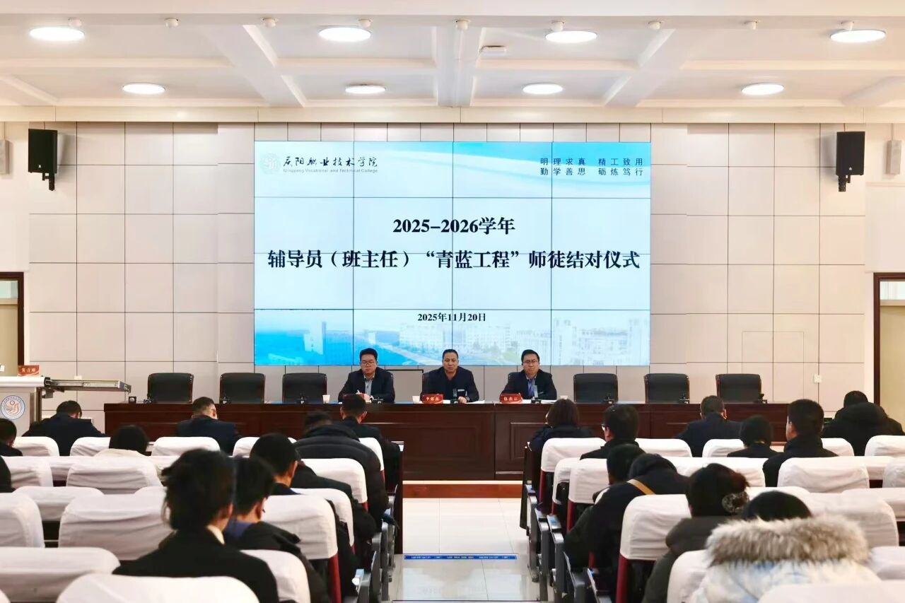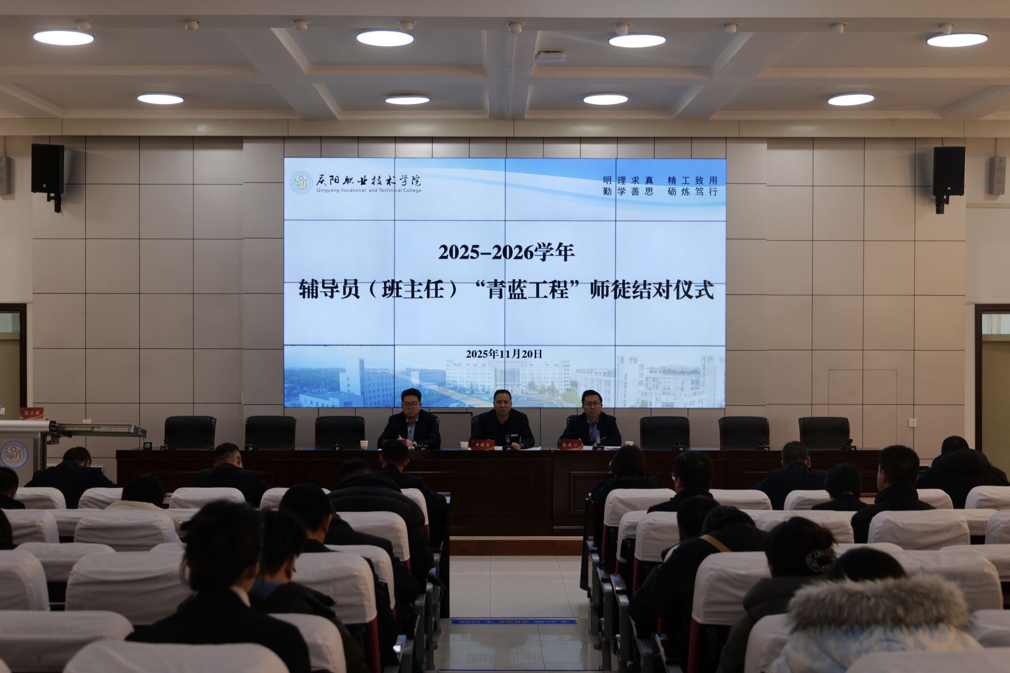 11月20日下午,庆阳职业技术学院在多媒体报告厅举行2025-2026学年辅导员(班主任)“青蓝工程”结对仪式。学院党委委员、副院长李建杰出席仪式,各系(院)负责人及全体辅导员参加。