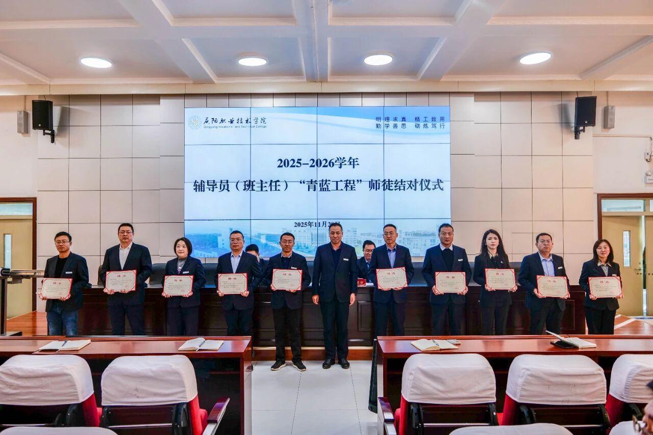 仪式上,学生工作处相关负责同志宣读了《庆阳职业技术学院2025-2026学年辅导员(班主任)“青蓝工程”师徒结对活动实施方案》,明确了目标任务与具体安排。学院领导为受聘指导教师颁发聘书,标志着新一期师徒结对关系正式建立。